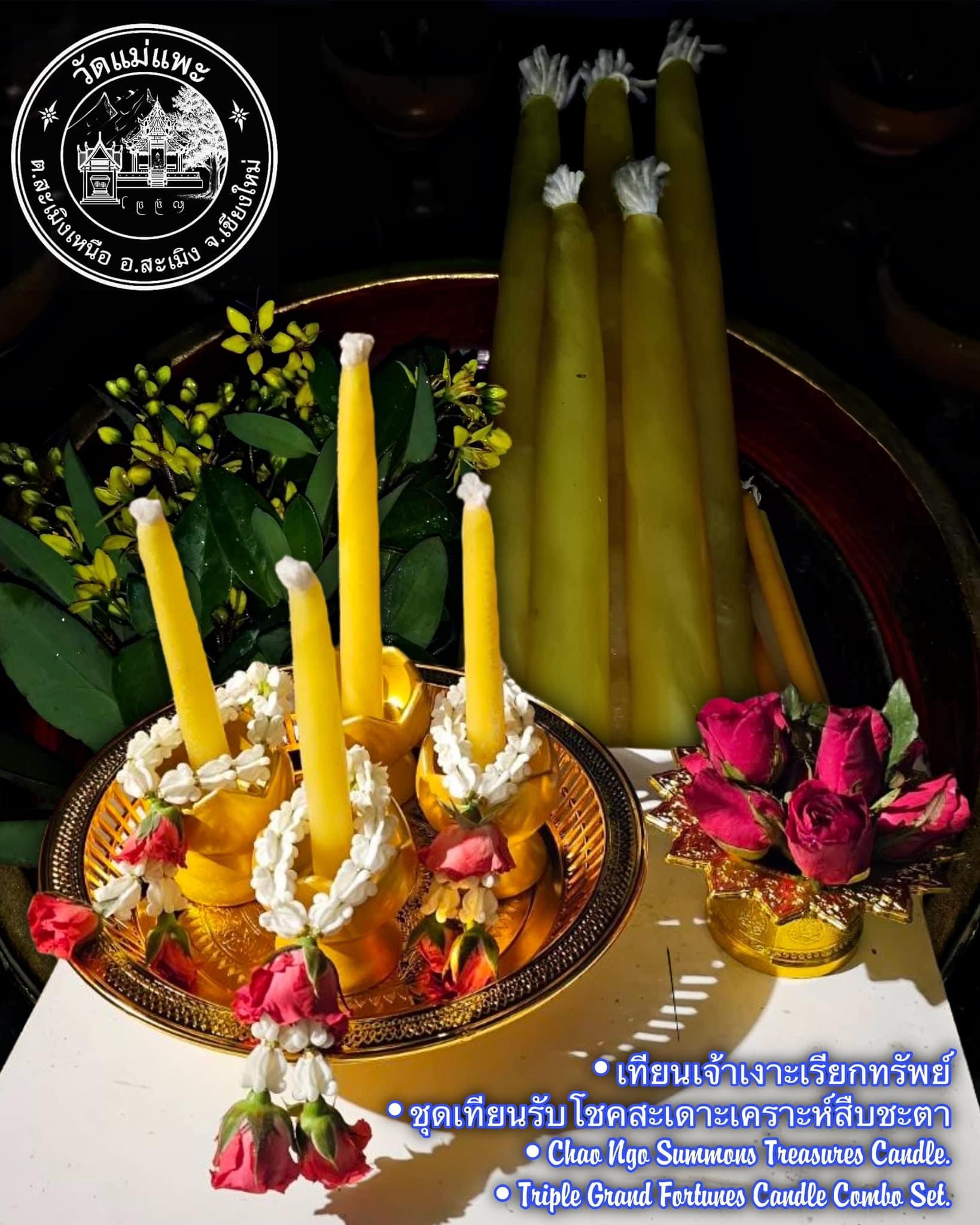 Triple Grand Fortunes Candle Combo Set by Kruba Thakoon, Mae Phae Temple, Chiang Mai Province.