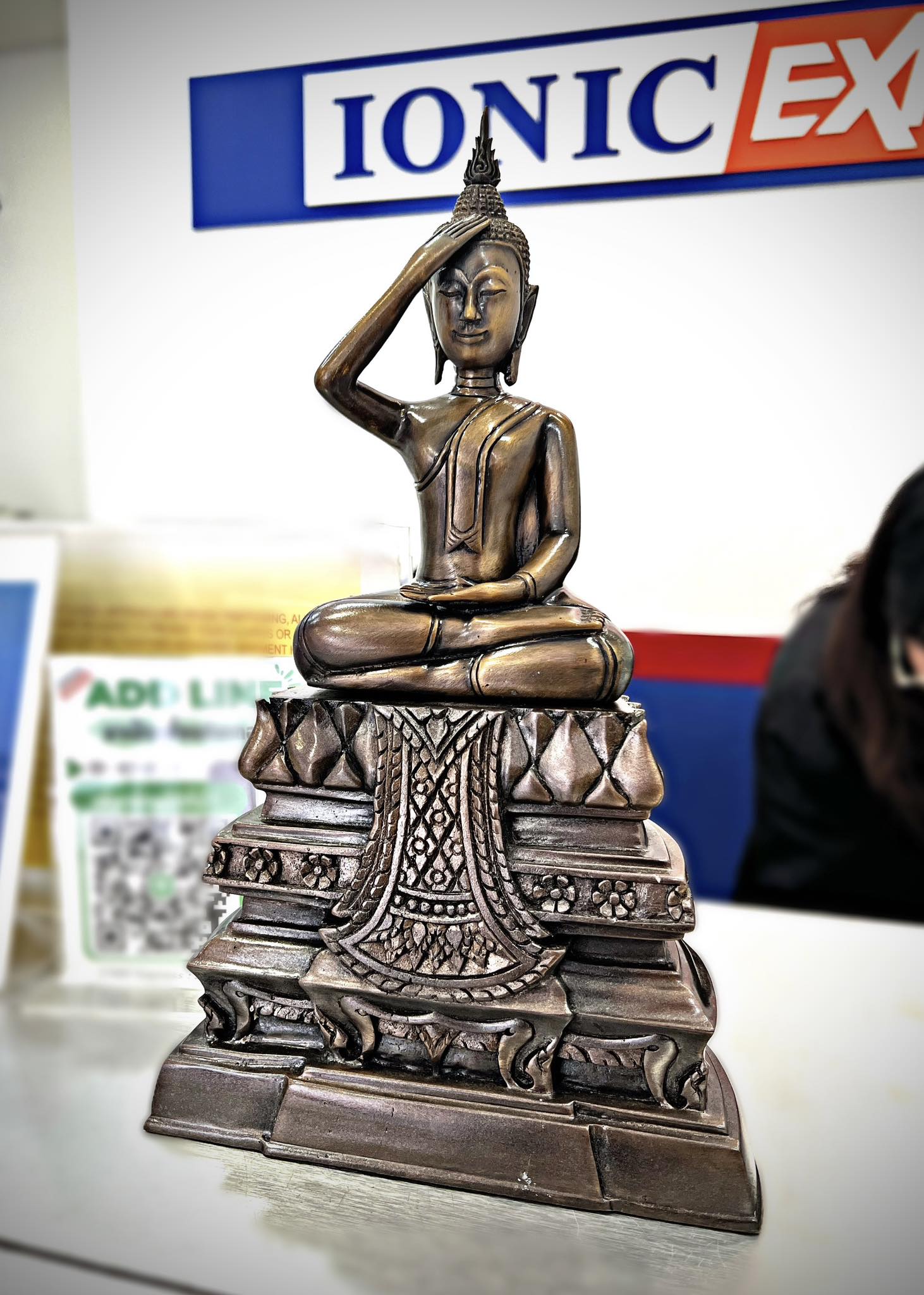 ”Touching Hair Posture Buddha Statue“ is now preparing to travel into the hands of a believer in Malaysia, soon to be enshrined alongside Brahma of Luang Por Chamnan. This is a rare posture, striking and eye-catching, and when it is created by Luang Phor Chamnarn, it surely carries profound and meaningful significance.