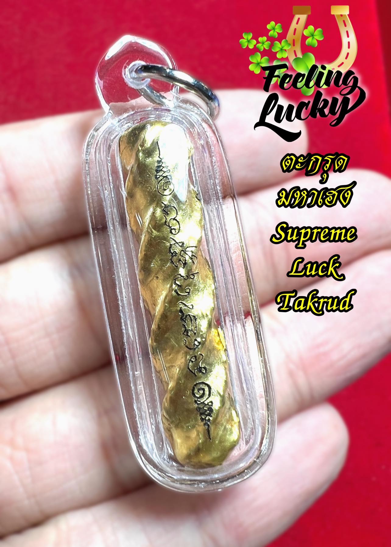 “Supreme Luck Takrud” will enhance your fortune to bring success in every aspect, according to your intentions. This is a powerful amulet for attracting love and popularity, with high charisma. It enhances communication skills, ensures good business, and promotes smooth earning. Abundant luck and wealth flow in continuously, with assets multiplying significantly. Additionally, it provides protection from dangers, ensuring that everything you do is prosperous and leads to wealth.