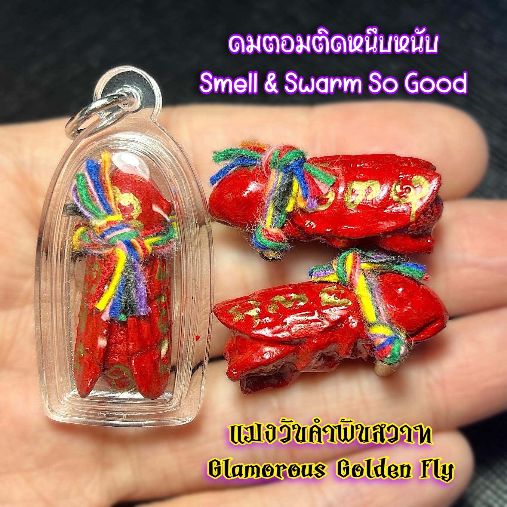 [ Smell & Swarm So Good ] Like everyone knows the nature of fly that if it starts to swarm or smell something, it will not stop, give up, change to others place or change its target. Even if it is expelled by humans 10 times or 100 times, it will always fly back to swarm to its target. This is what the fly is born to be. No wonder why the "Golden Fly" amulet will support the owner to be a charming guy, having high attracting power and easy to make someone fall in love like as the fly never stop to smell its target.