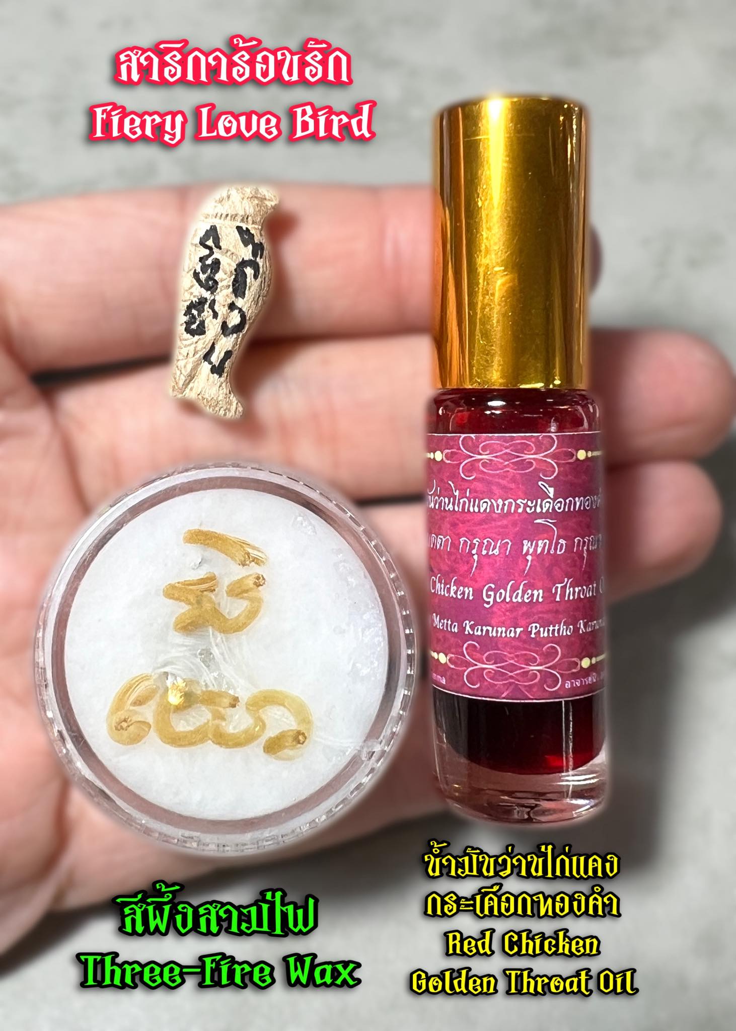 Finally, it becomes a Sarika bird of rare and unmatched potency, imbued with the power to irresistibly attract hearts and minds. Those who possess it become instantly likable and adored by everyone they meet. It subtly awakens the carnal desires of those nearby, drawing them in as if under an enchantment. The charm stirs the flames of passion, igniting a fire of lust and longing. The longer someone engages in conversation or remains close to the bearer, especially if that person is the object of the bearer’s desire, the stronger their yearning becomes, to the point where resisting intimate urges becomes nearly impossible. This Fiery Love Bird is ideal for those who crave affection from many, or work in service industries where personal magnetism is essential to winning hearts and favor. It is also highly effective in business negotiations and sales, helping to attract fortune, success, and constant attention from others. Easy to use, one simply needs to focus their intention and make a heartfelt wish, and their desires will be fulfilled. ![]() พอนำไปเลี่ยมในกรอบสีทองแล้ว สวยแจ่มจรัสมาก พญานกสาริกาผู้แผดเสียงเสน่หา เป็นเอกในการจูงจิตจูงใจผู้คน ใครมีไว้ไม่มีผิดหวัง เพราะเรื่องเจรจาคือยืนหนึ่ง Once encased in a waterproof, gold-colored case, it shines with striking radiance. Fiery Love Bird, known for its enchanting voice, excels at captivating hearts and minds. Whoever possesses it will not be disappointed, it stands unrivaled in charm and persuasion.