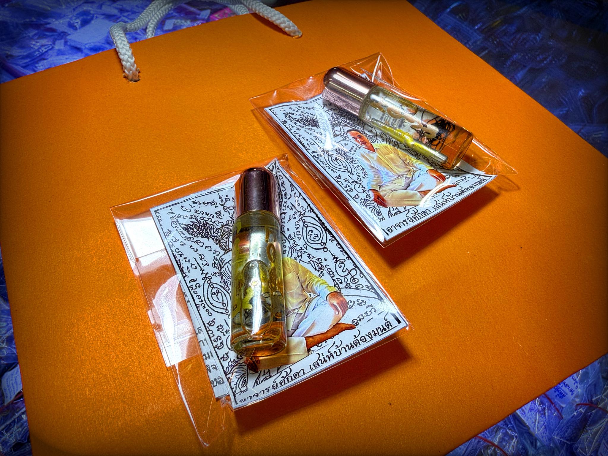 Whoever hears of the renowned reputation of this oil will surely desire to experience the real thing at least once. Maha Lam-Of Palace Charming Oil, directly inherited from Luang Por Noppawan with a dozen vials of the original concentrated formula, is so powerful that even Arjarn O Sakda was deeply impressed by its extraordinary potency.