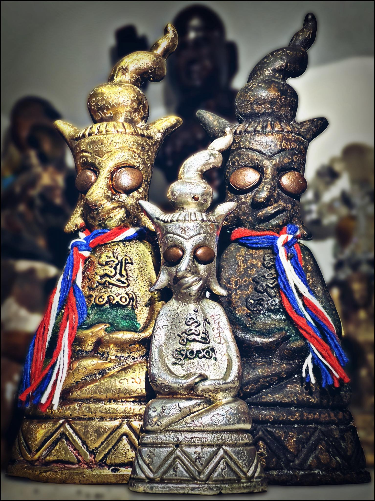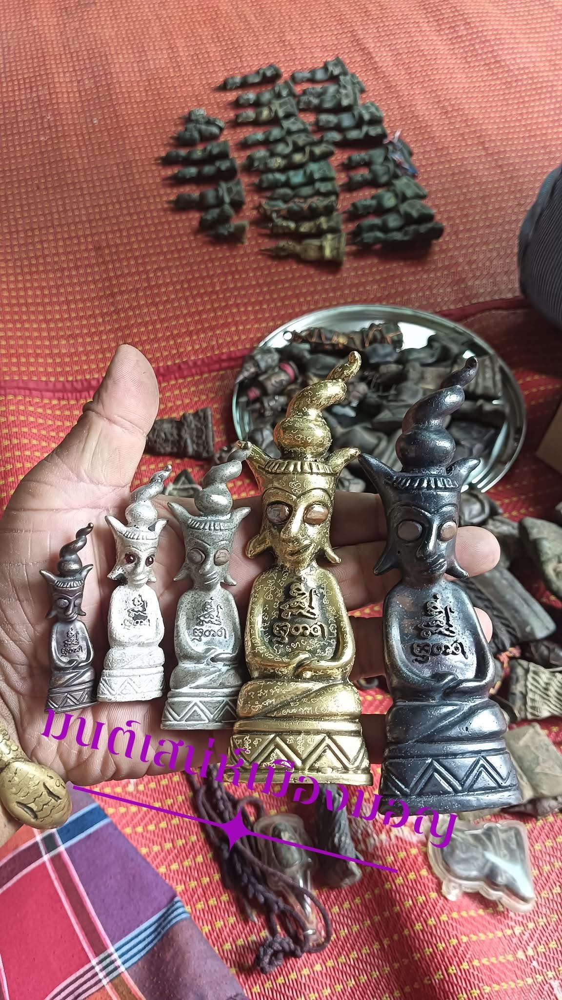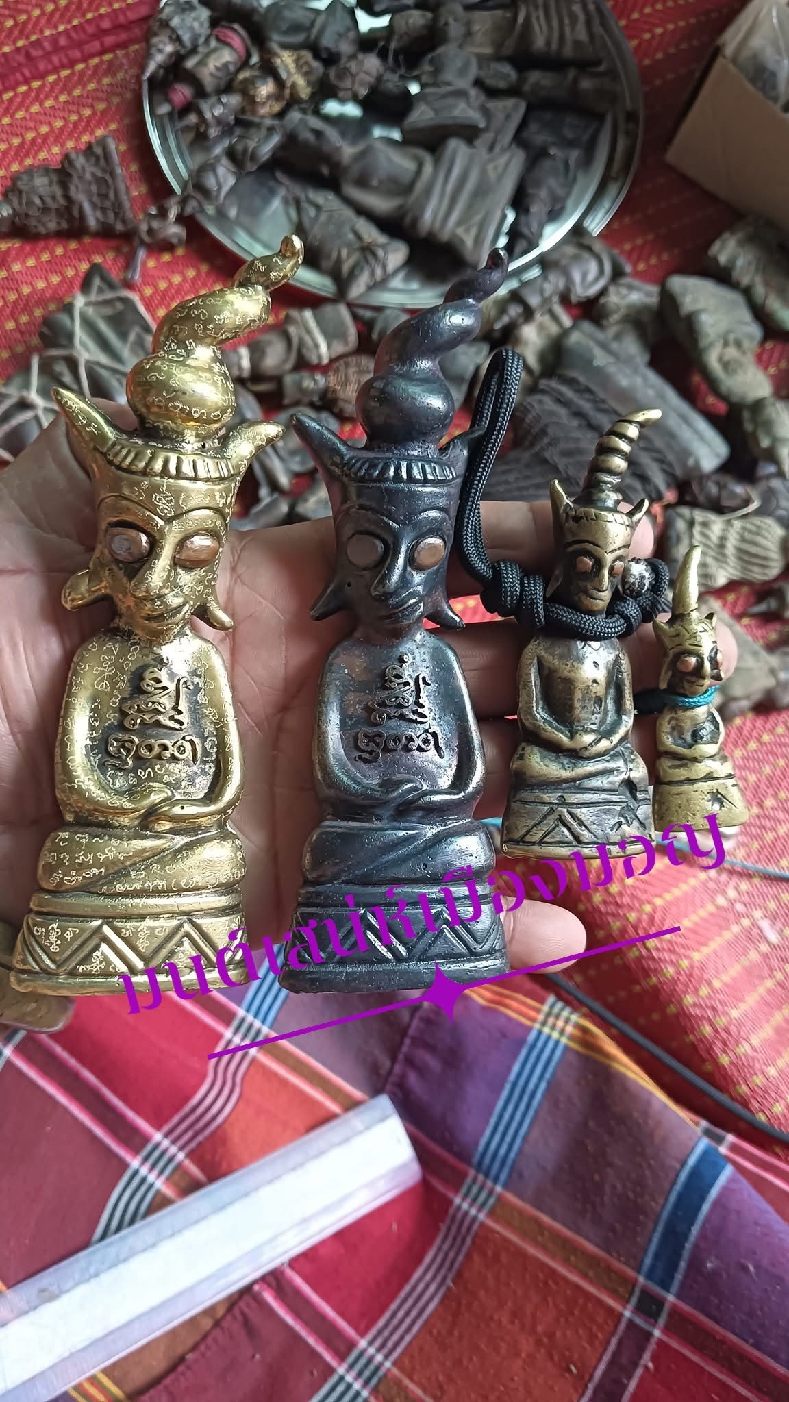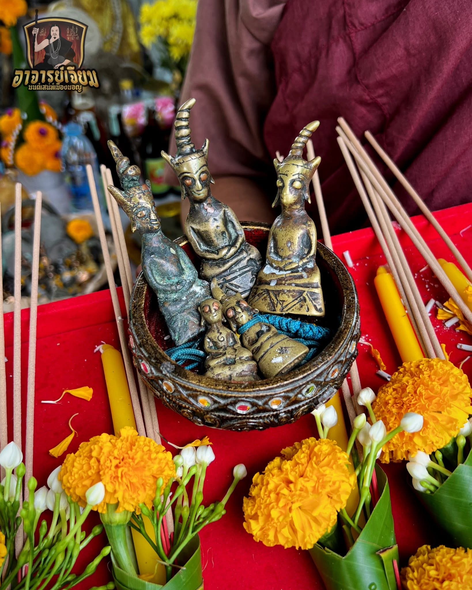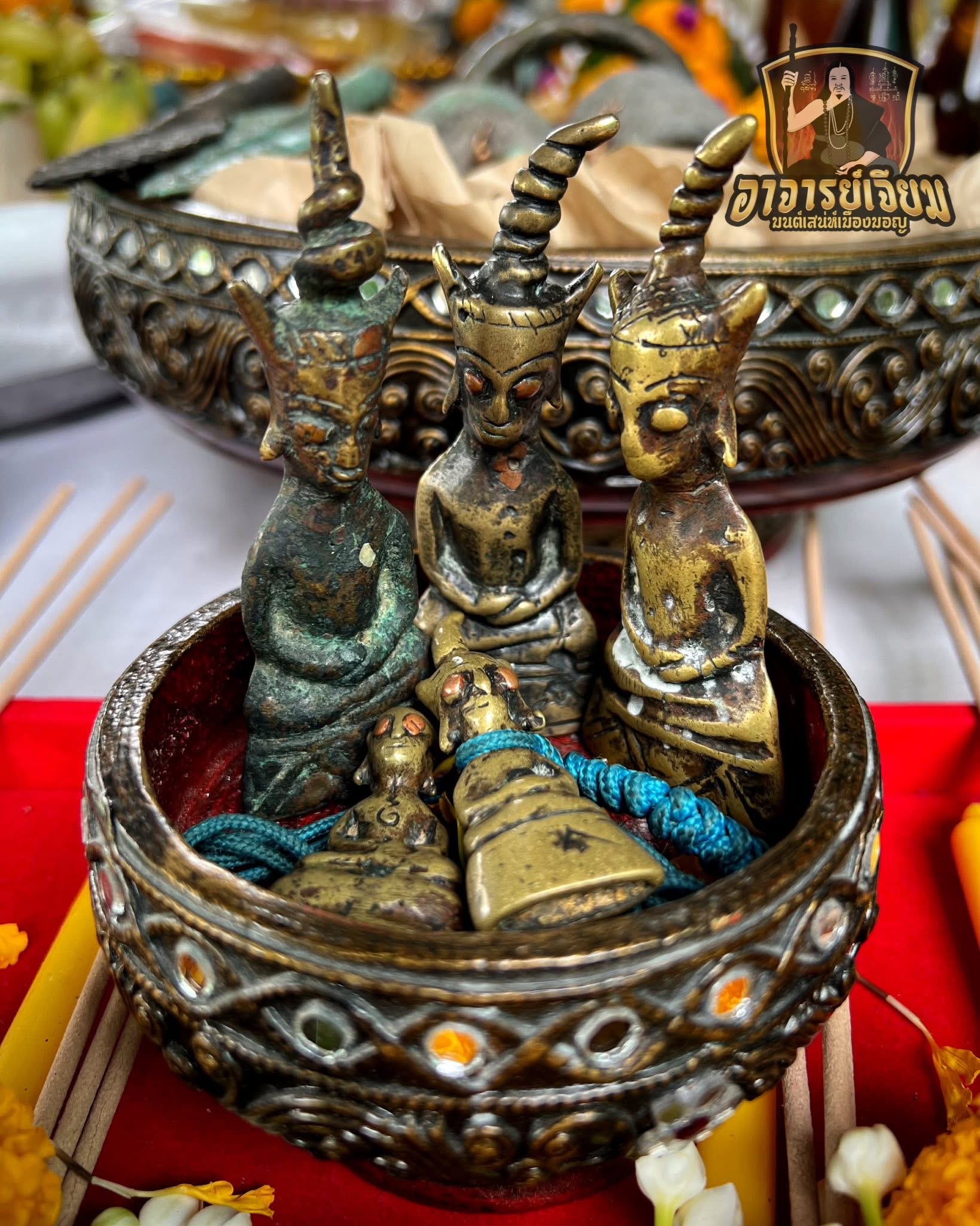 ของแรร์ระดับเทพ 3 องค์นี้เป็นชุดพิเศษ ไม่มีให้บูชาทั่วไป องค์กลางคือไฮไลท์ เนื้อเงิน ก้นอุดเหล็กไหล ฝังตะกรุดทองคำ อาจารย์เจียมสร้างไว้เพียง 4 องค์