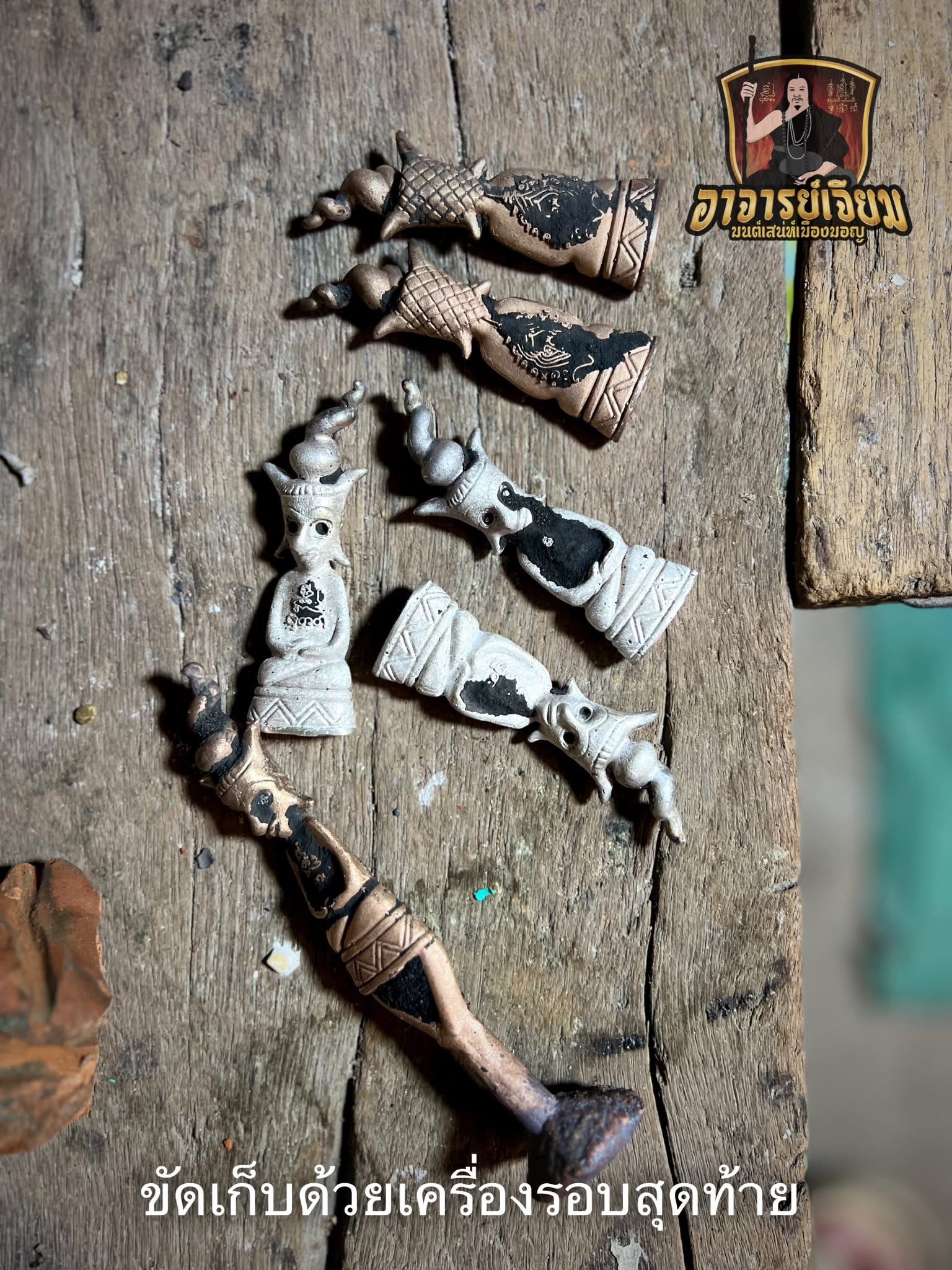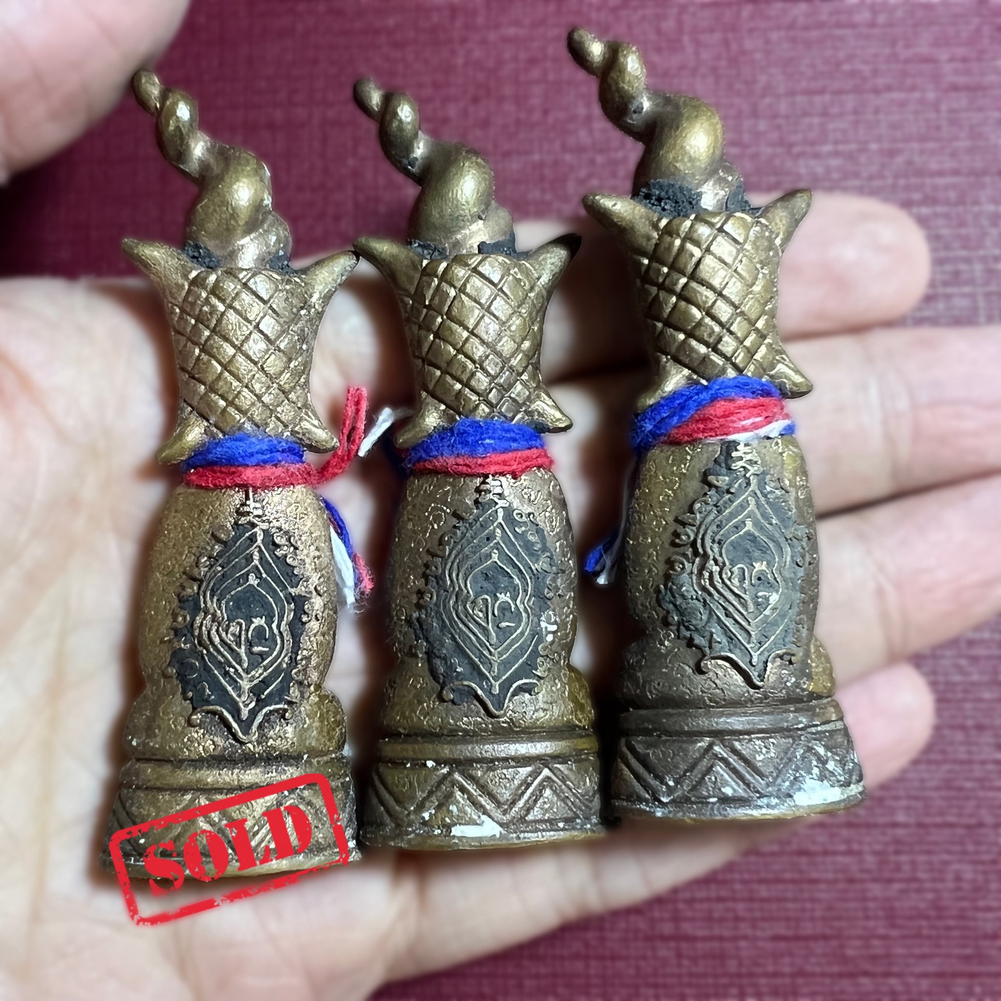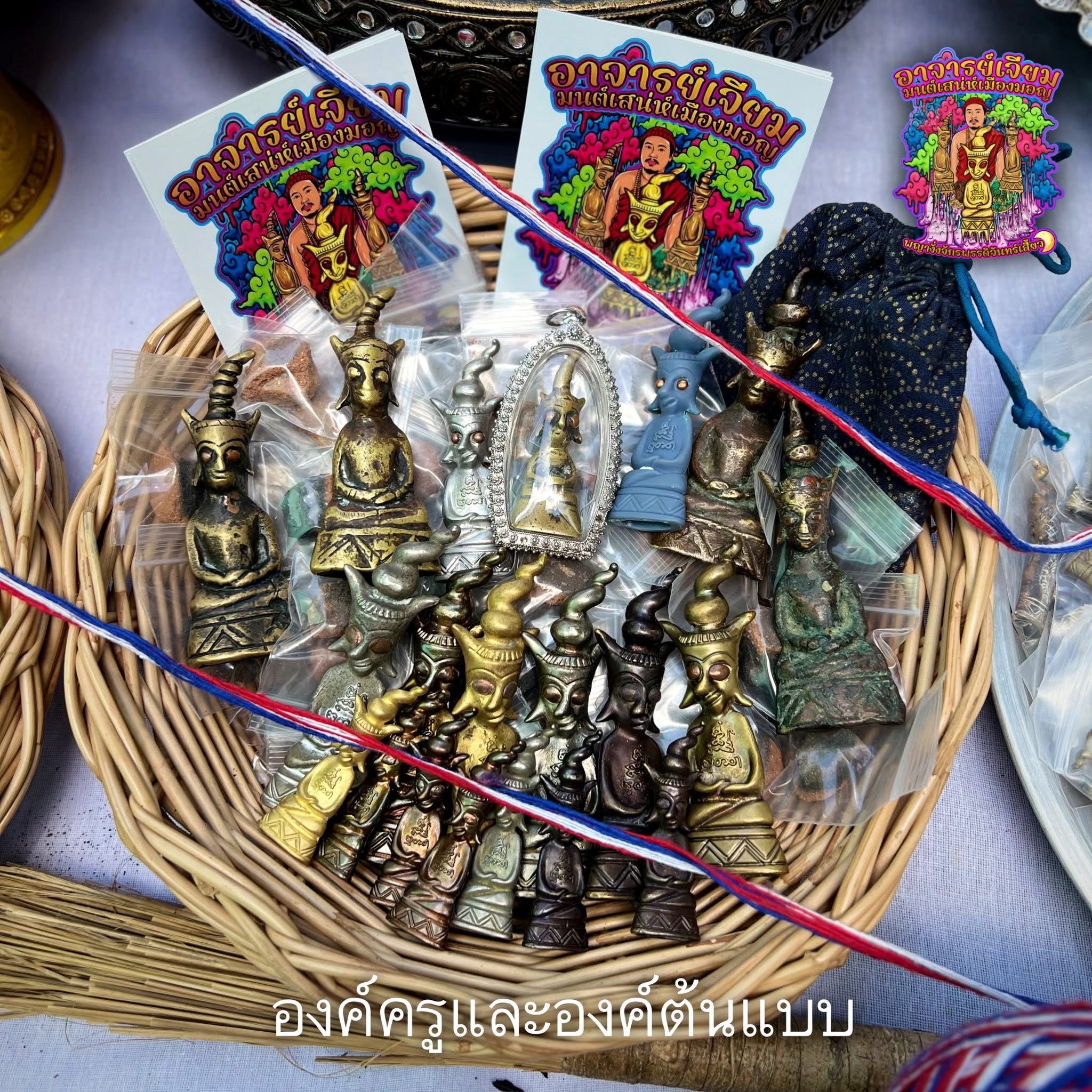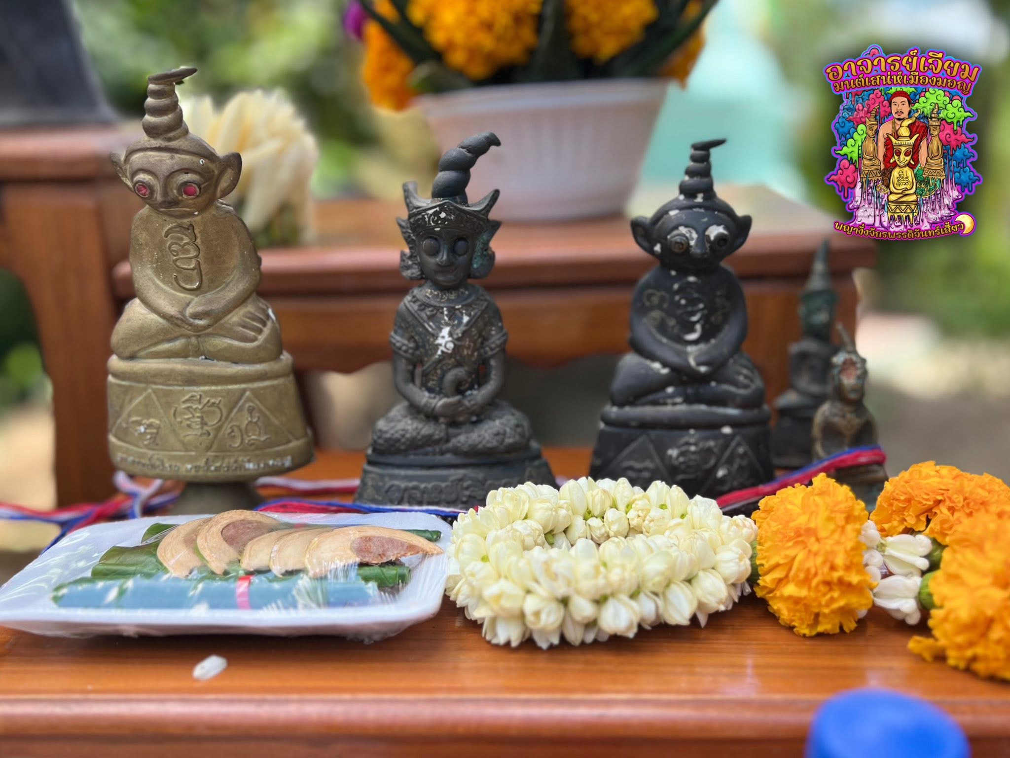 ของแรร์ระดับเทพ 3 องค์นี้เป็นชุดพิเศษ ไม่มีให้บูชาทั่วไป องค์กลางคือไฮไลท์ เนื้อเงิน ก้นอุดเหล็กไหล ฝังตะกรุดทองคำ อาจารย์เจียมสร้างไว้เพียง 4 องค์