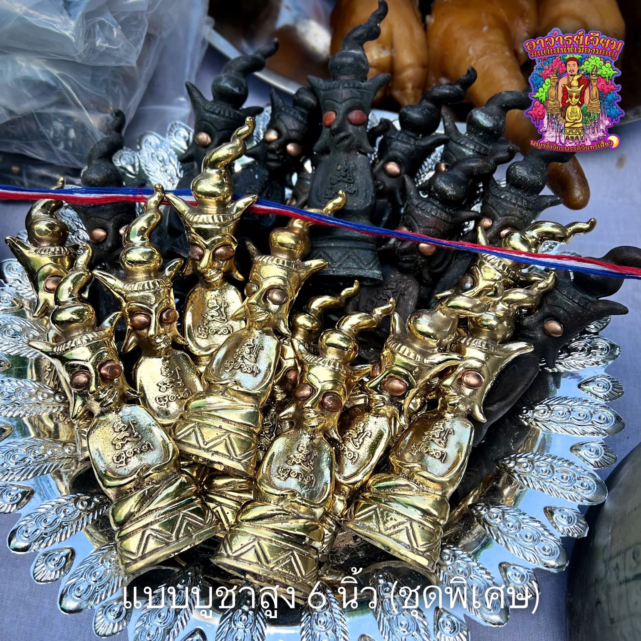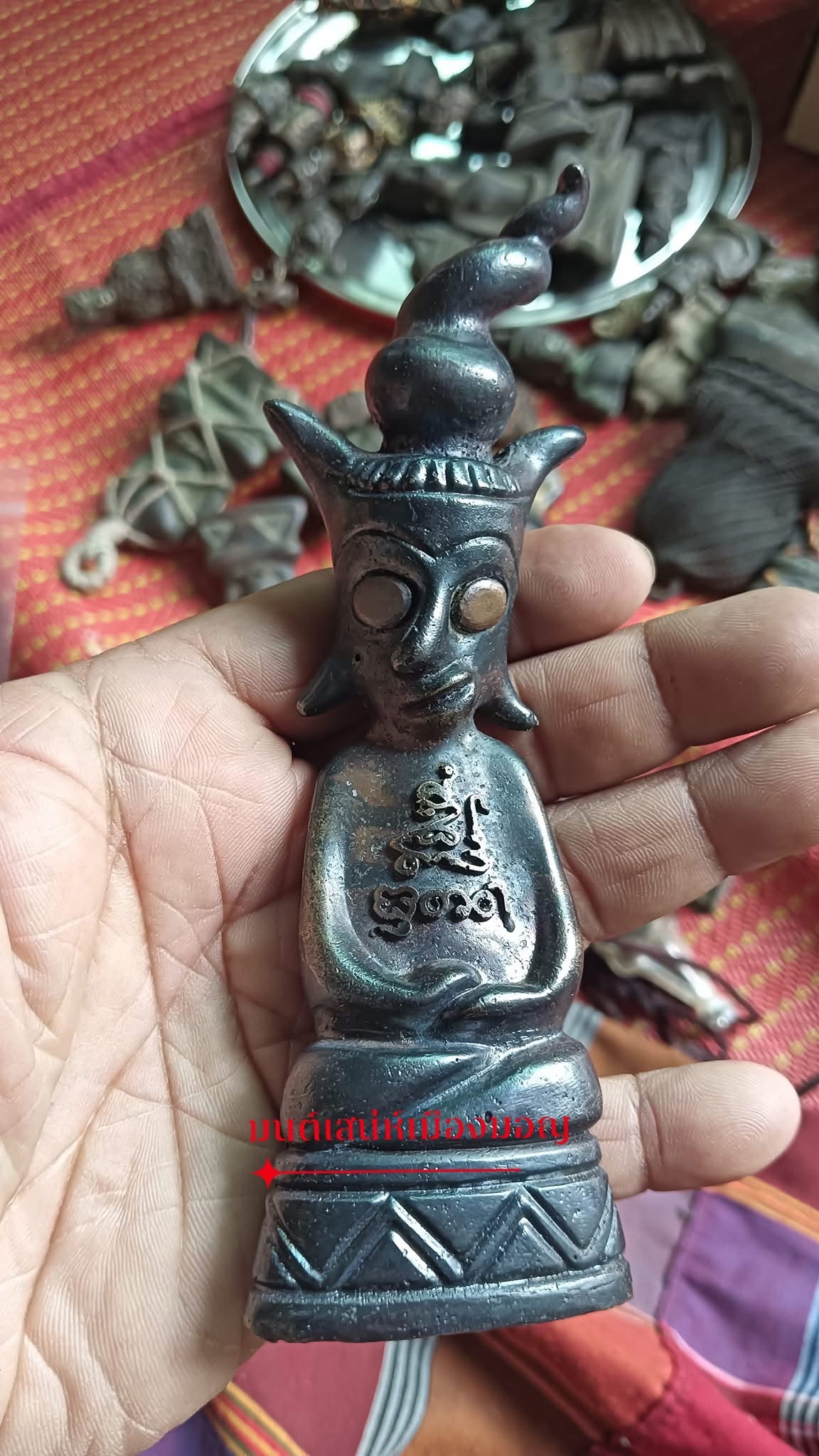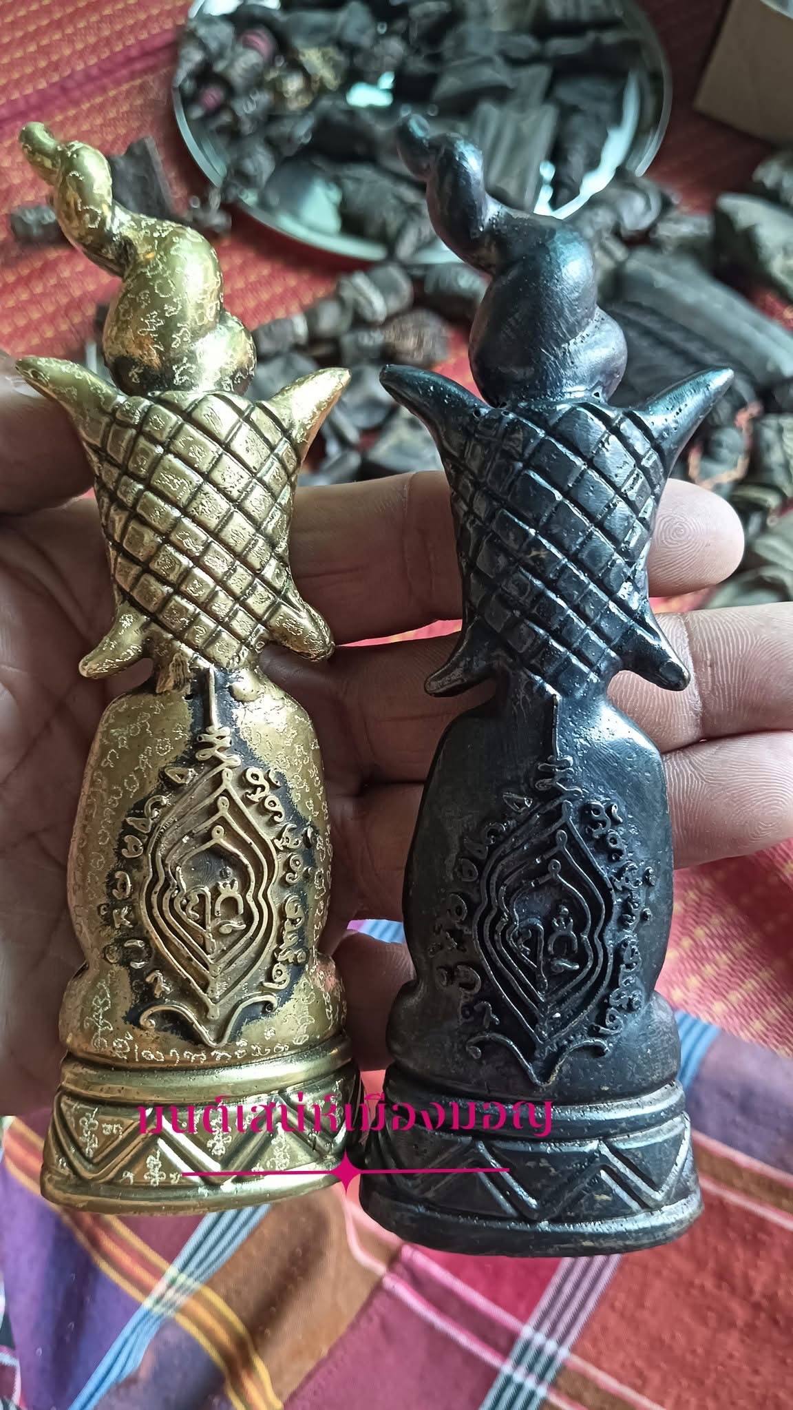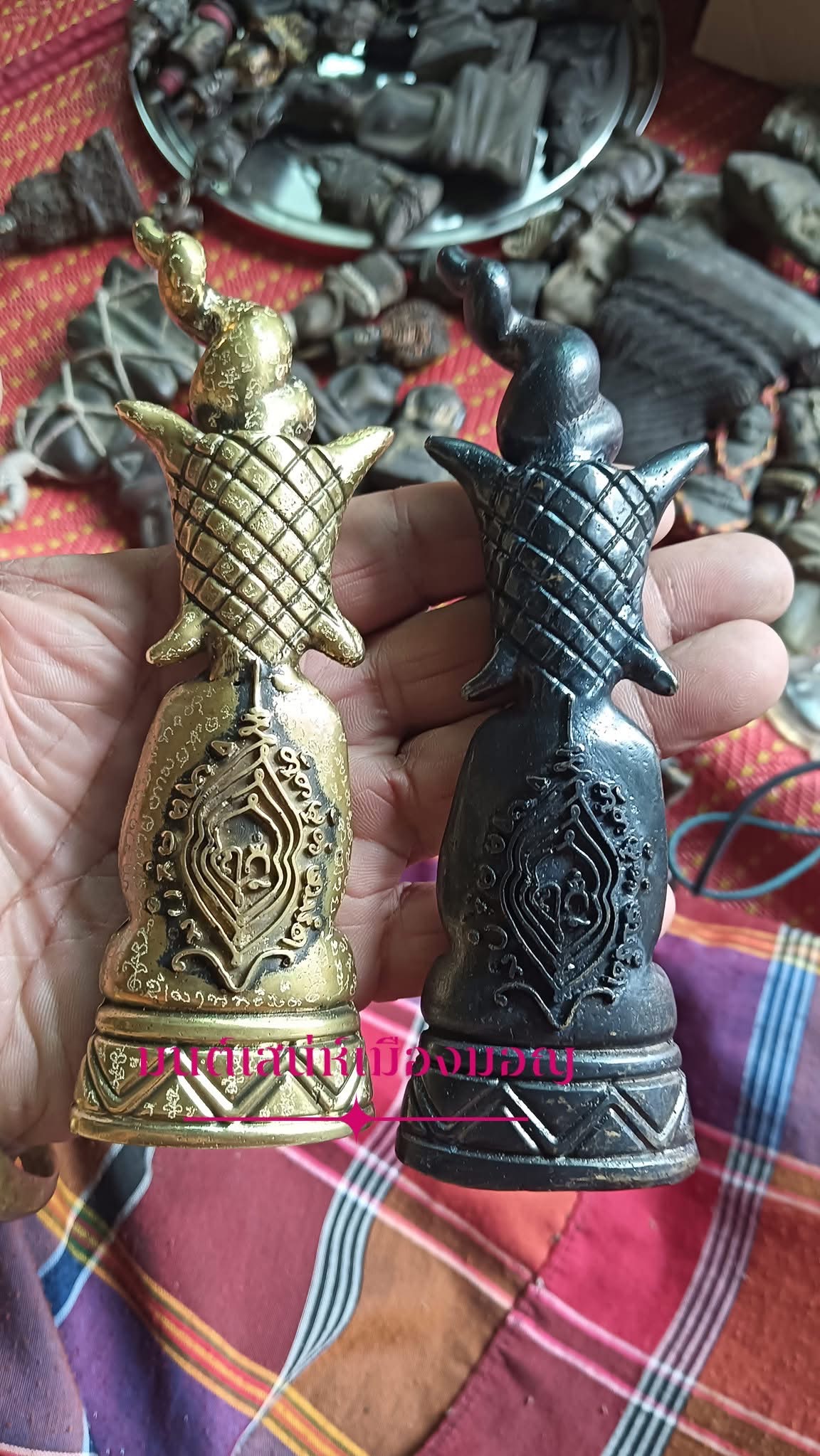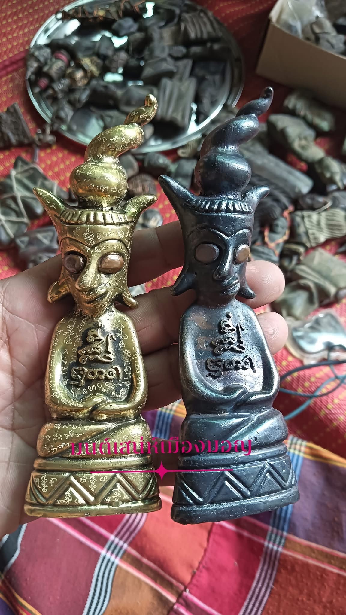 ของแรร์ระดับเทพ 3 องค์นี้เป็นชุดพิเศษ ไม่มีให้บูชาทั่วไป องค์กลางคือไฮไลท์ เนื้อเงิน ก้นอุดเหล็กไหล ฝังตะกรุดทองคำ อาจารย์เจียมสร้างไว้เพียง 4 องค์