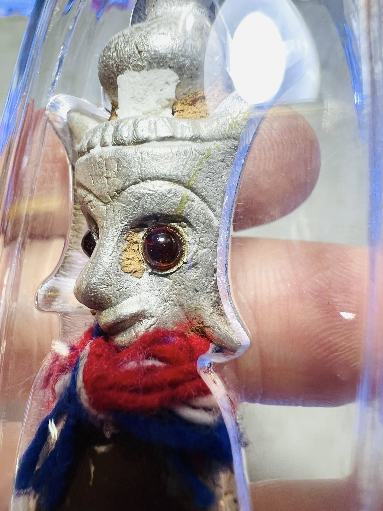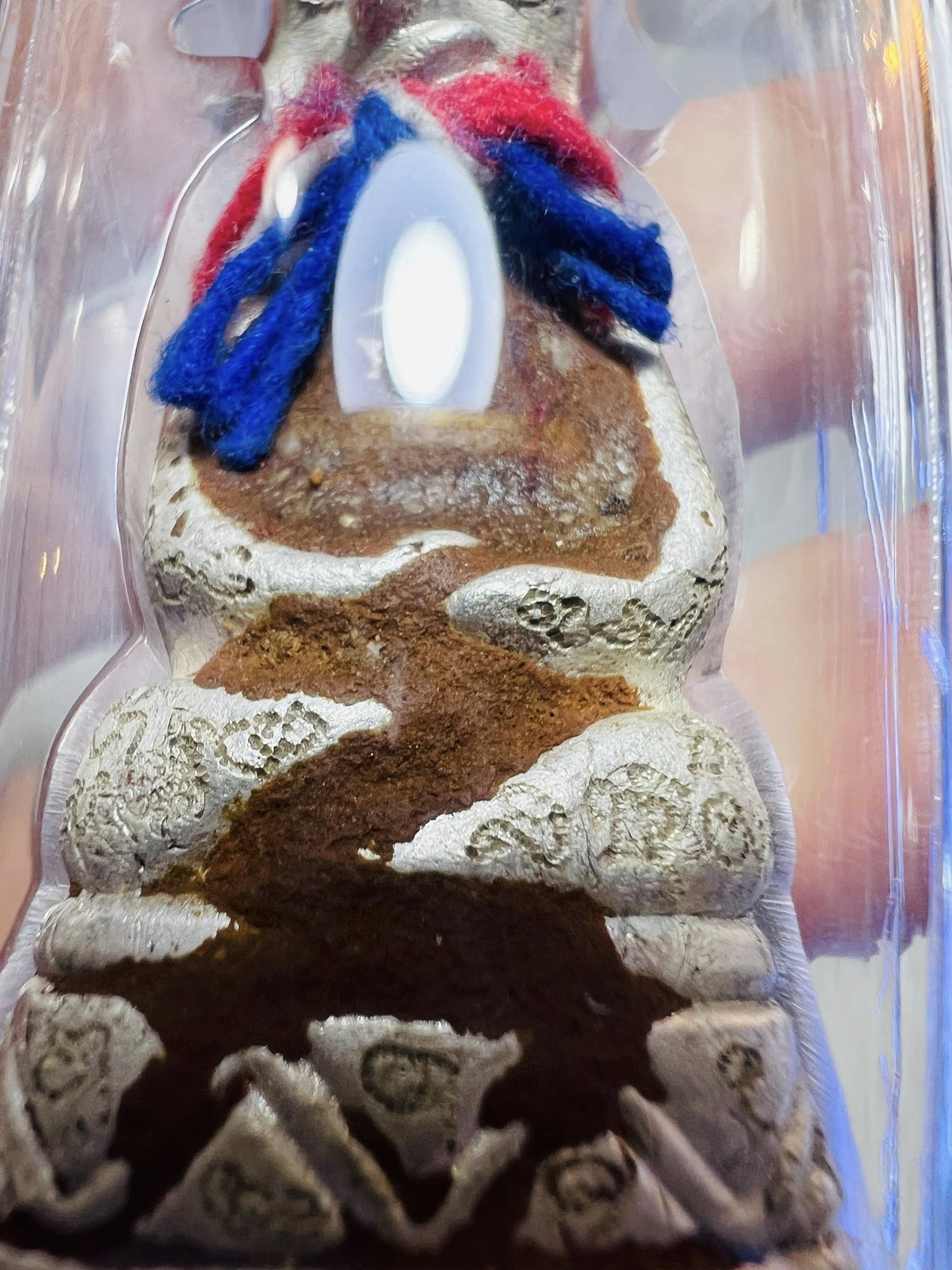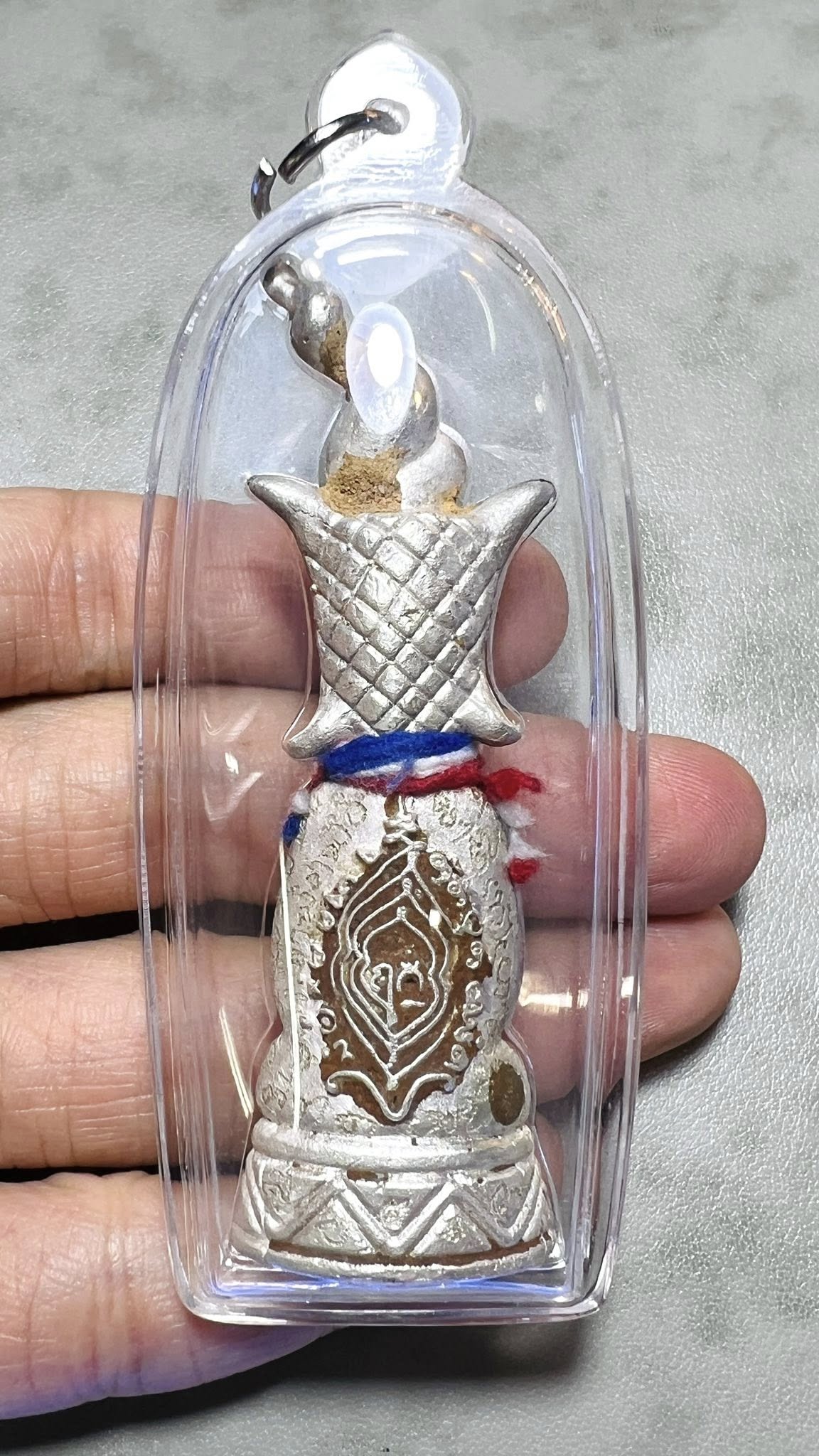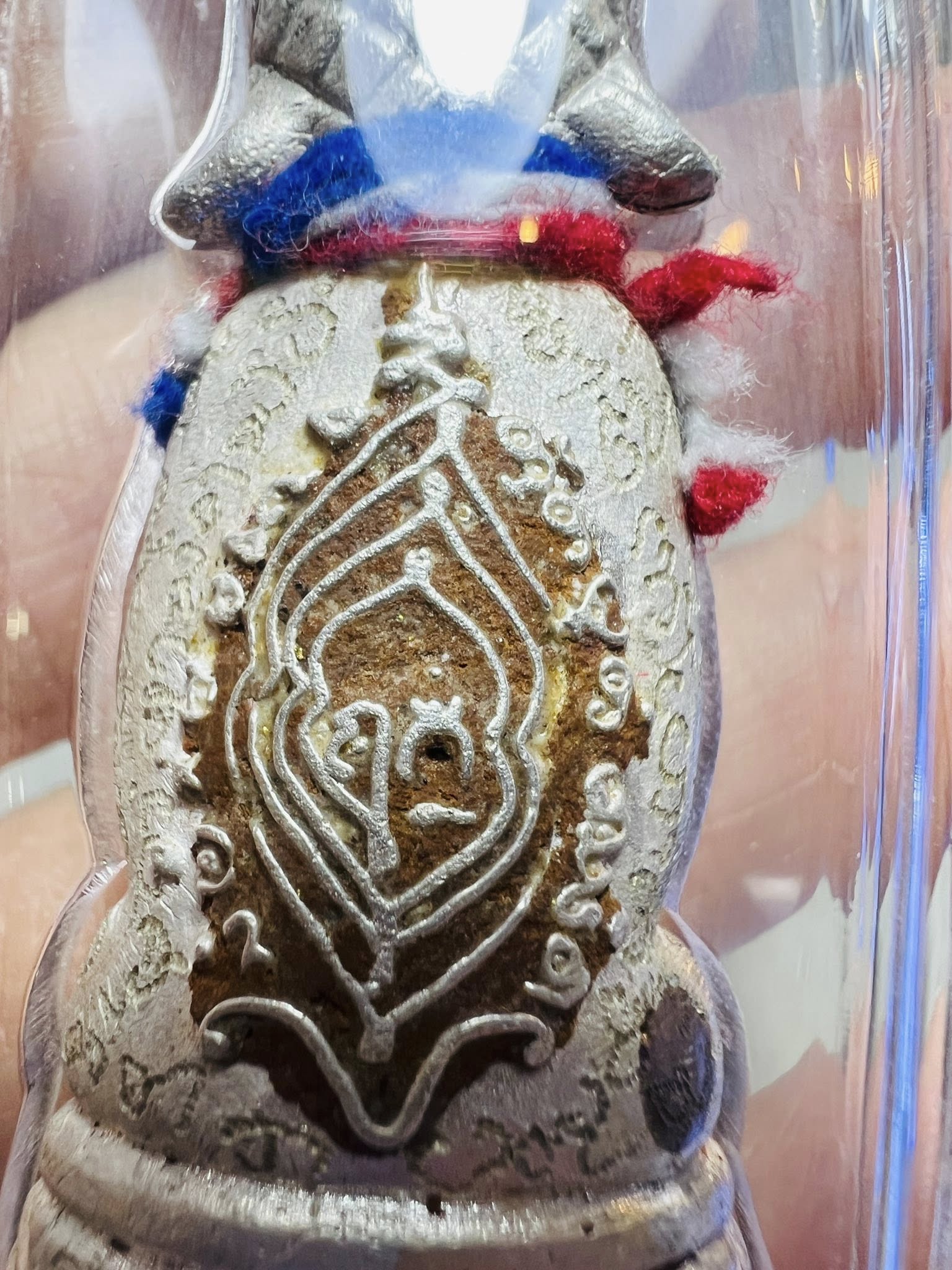 These three god-tier rare amulets are a special, non-publicly available set for worship. The center one is the highlight, made of silver, with the base sealed with Lek Lai and embedded with a gold Takrud. Arjarn Jiam created only 4 of these pieces.