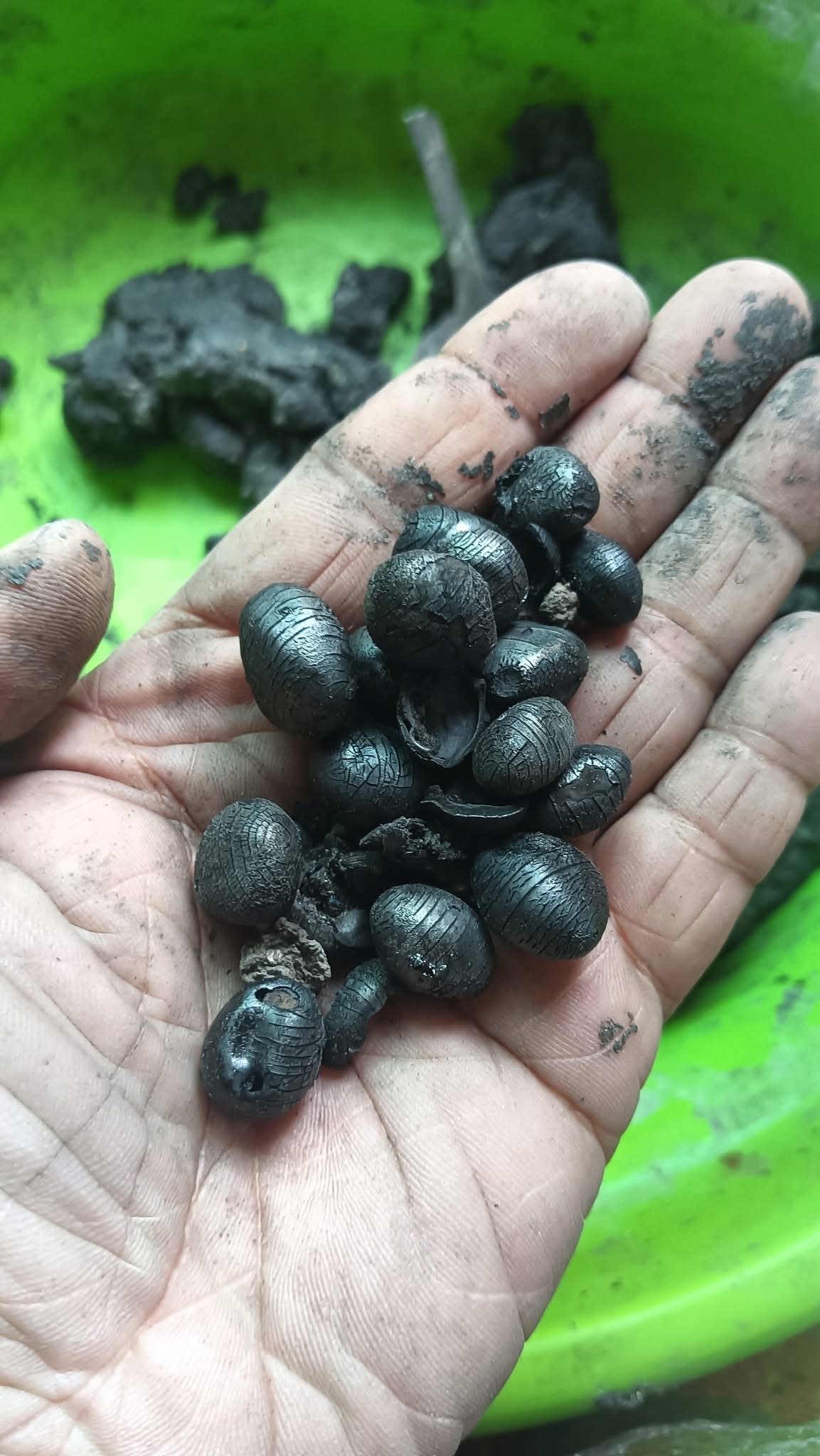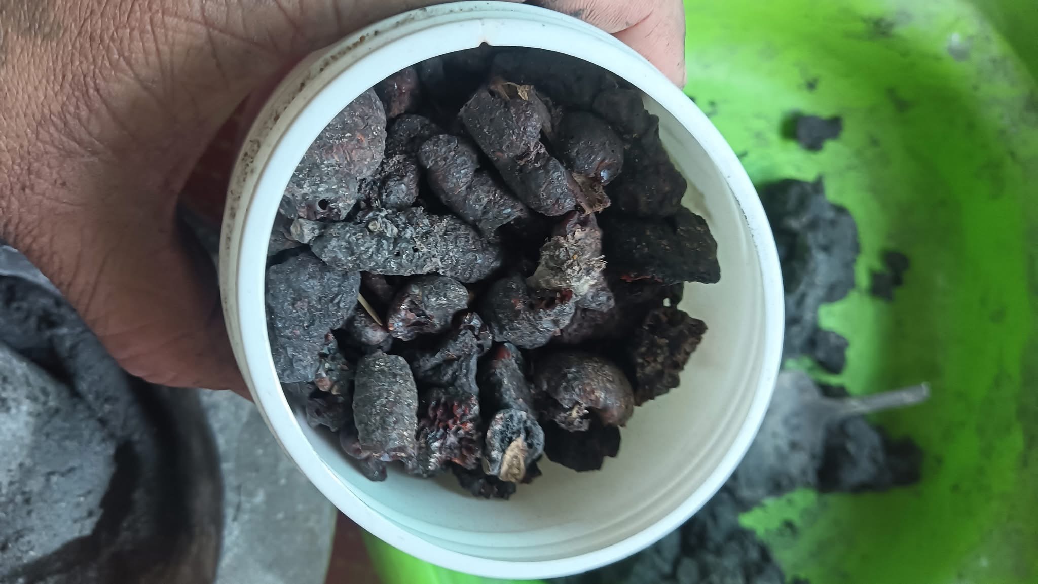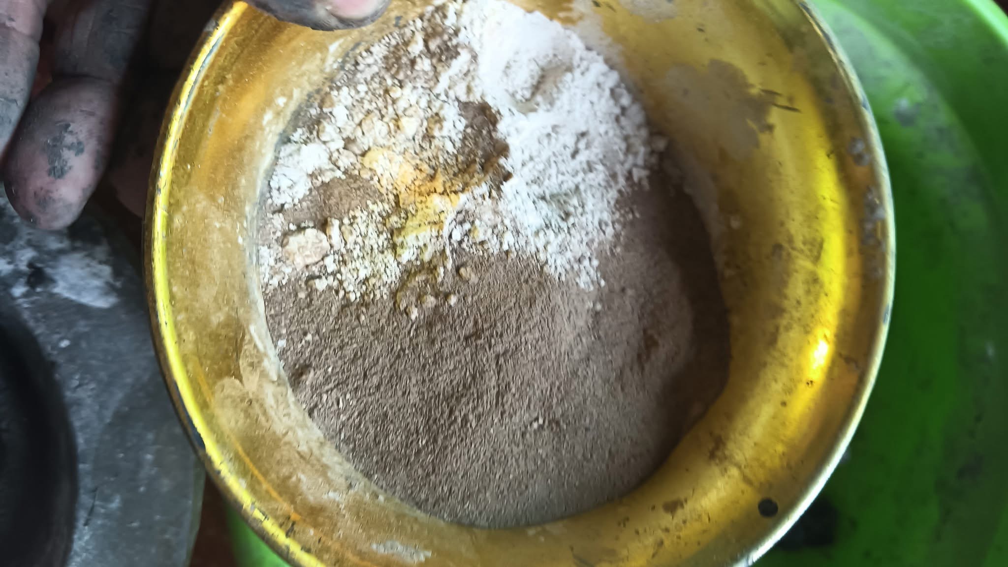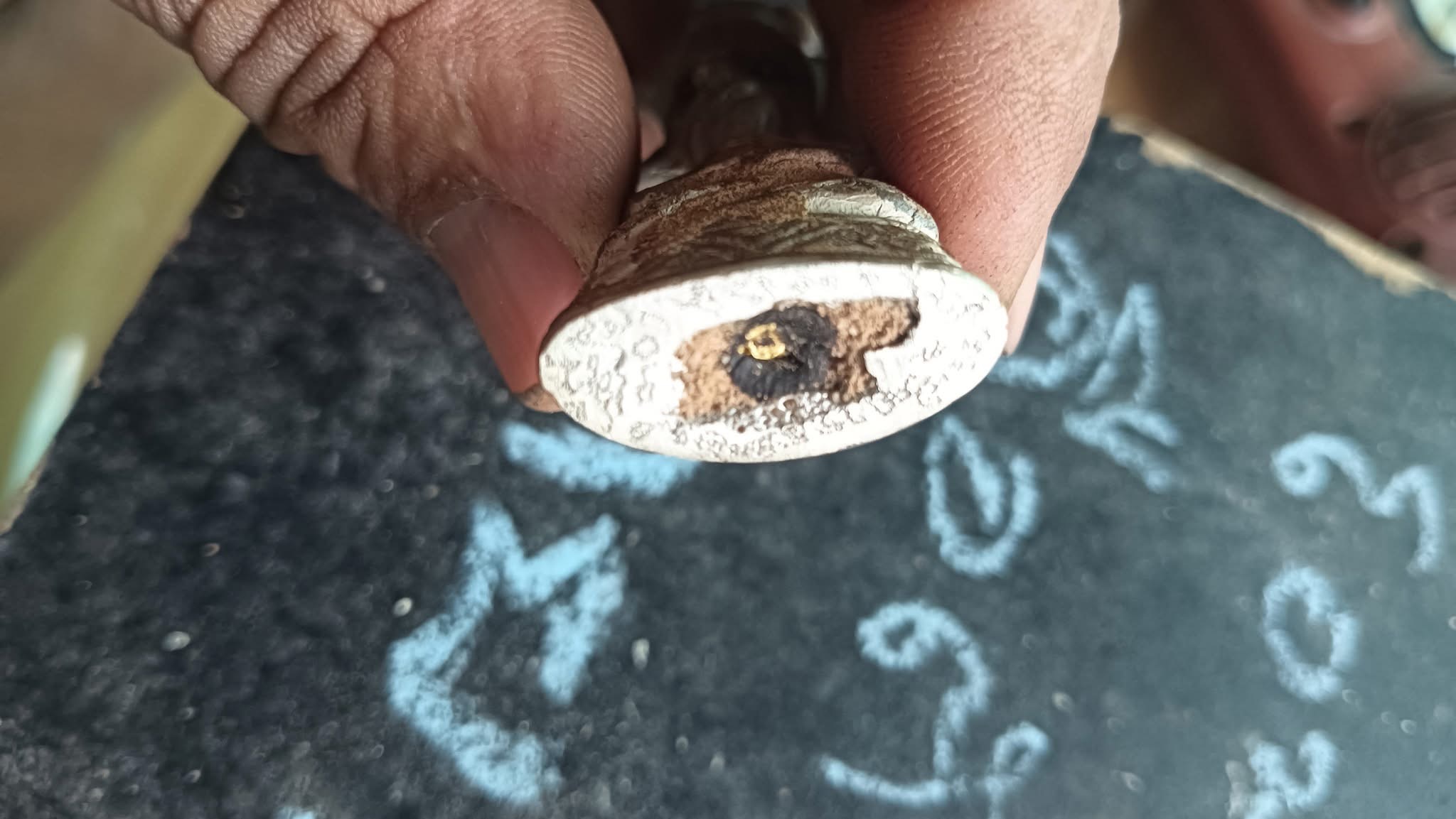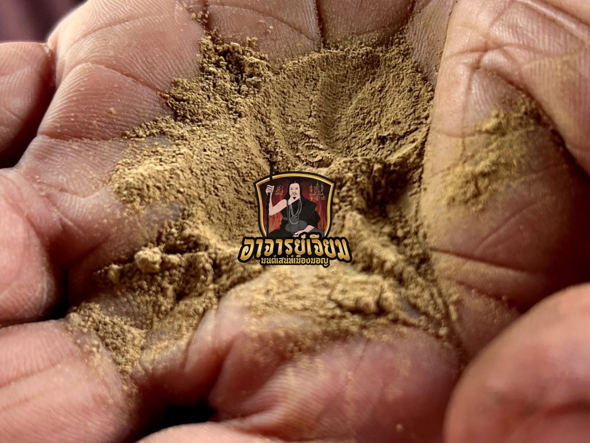 ผงใบลานผสมมวลสารต่างๆ หนึ่งในมวลสารที่อาจารย์เจียมนำมาอุดใต้ฐานพญางั่งจักรพรรดิพญางั่งจันทร์เสี้ยว