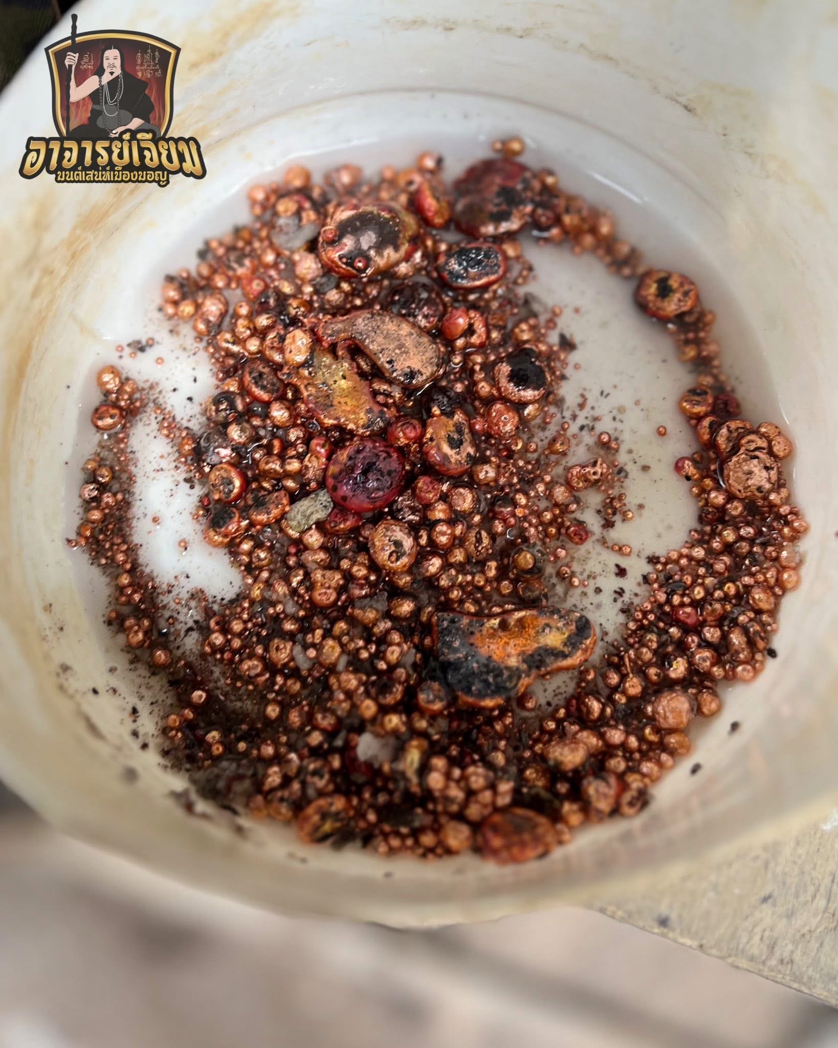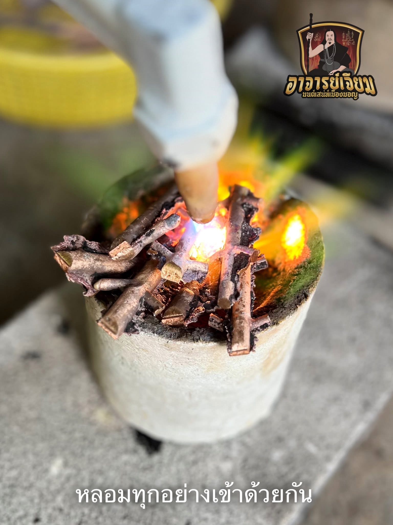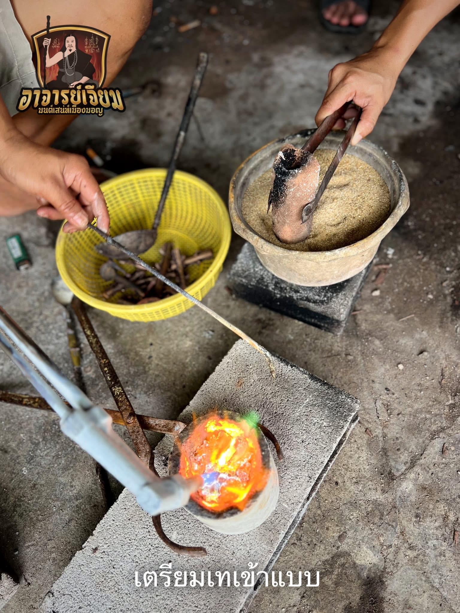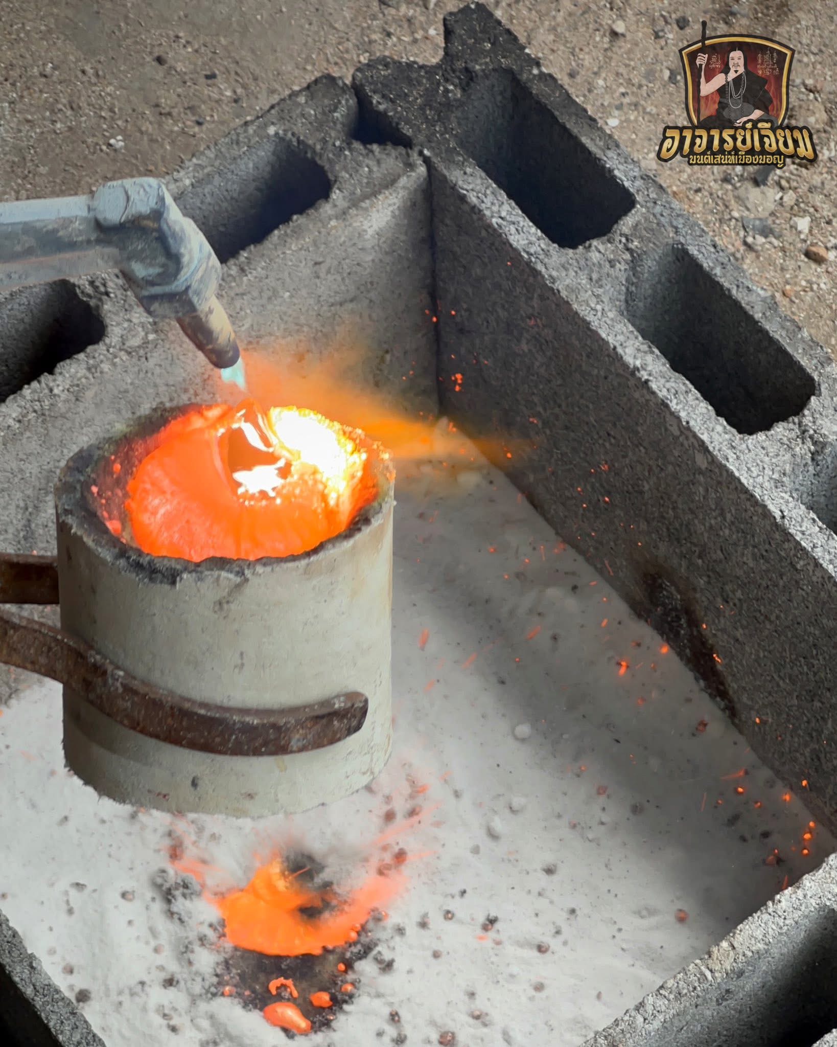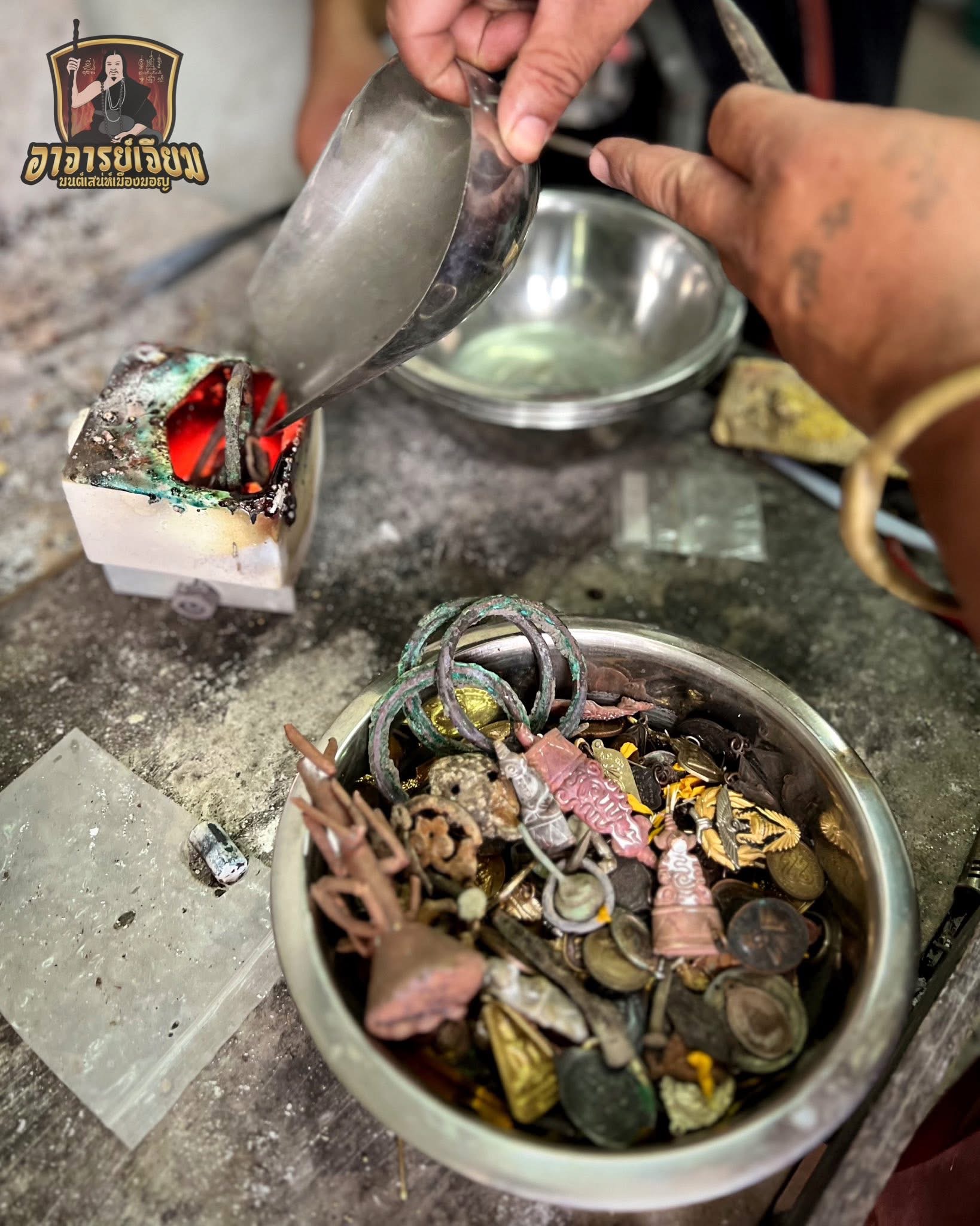 On Saturday, May 10, 2025 (14th waxing moon of the 6th lunar month, Year of the Snake), Ararn Jiam performed a ritual to consecrate the sacred materials at his sanctuary in the morning, following the auspicious time that had been set. After that, he traveled to the foundry to conduct the casting ceremony.