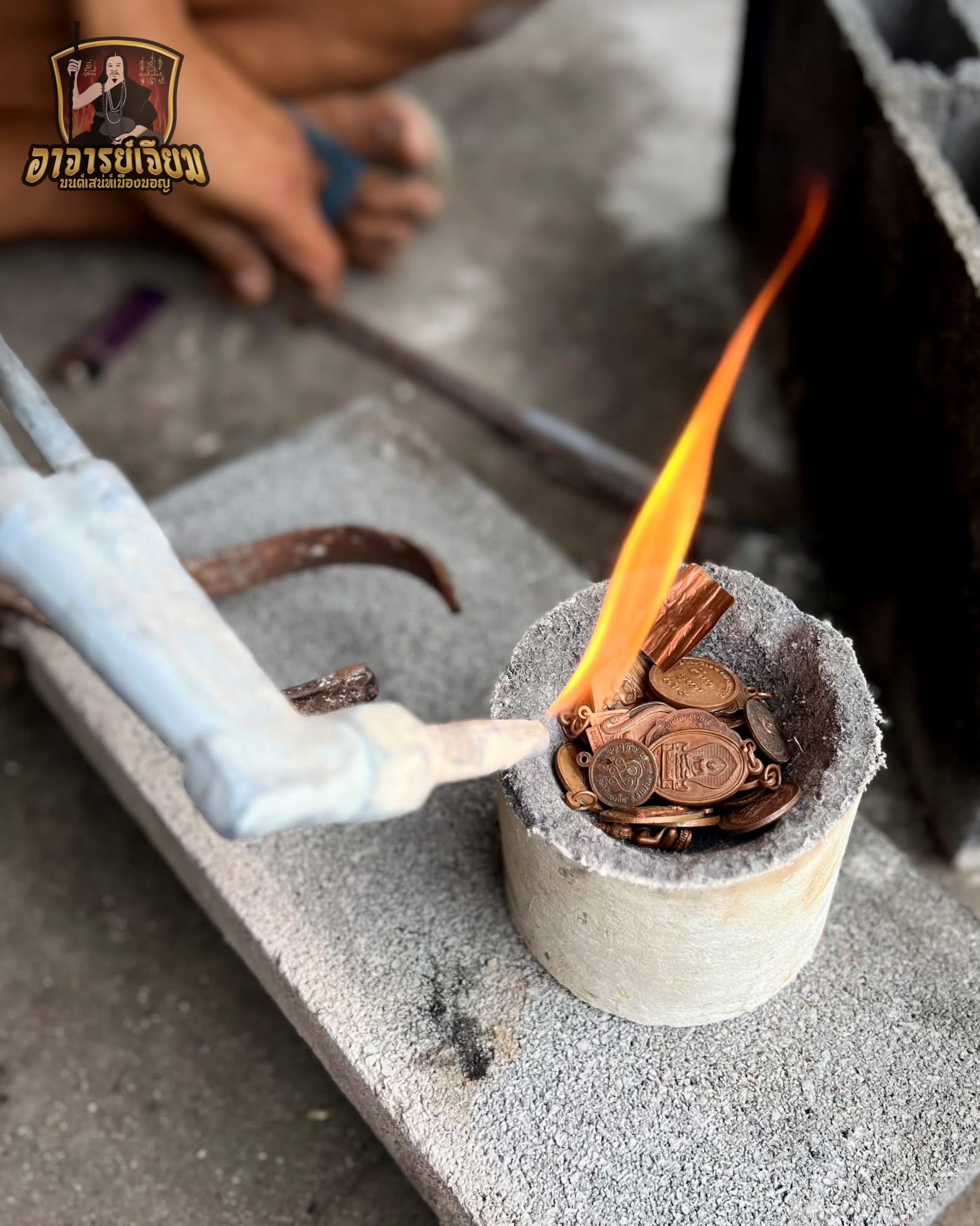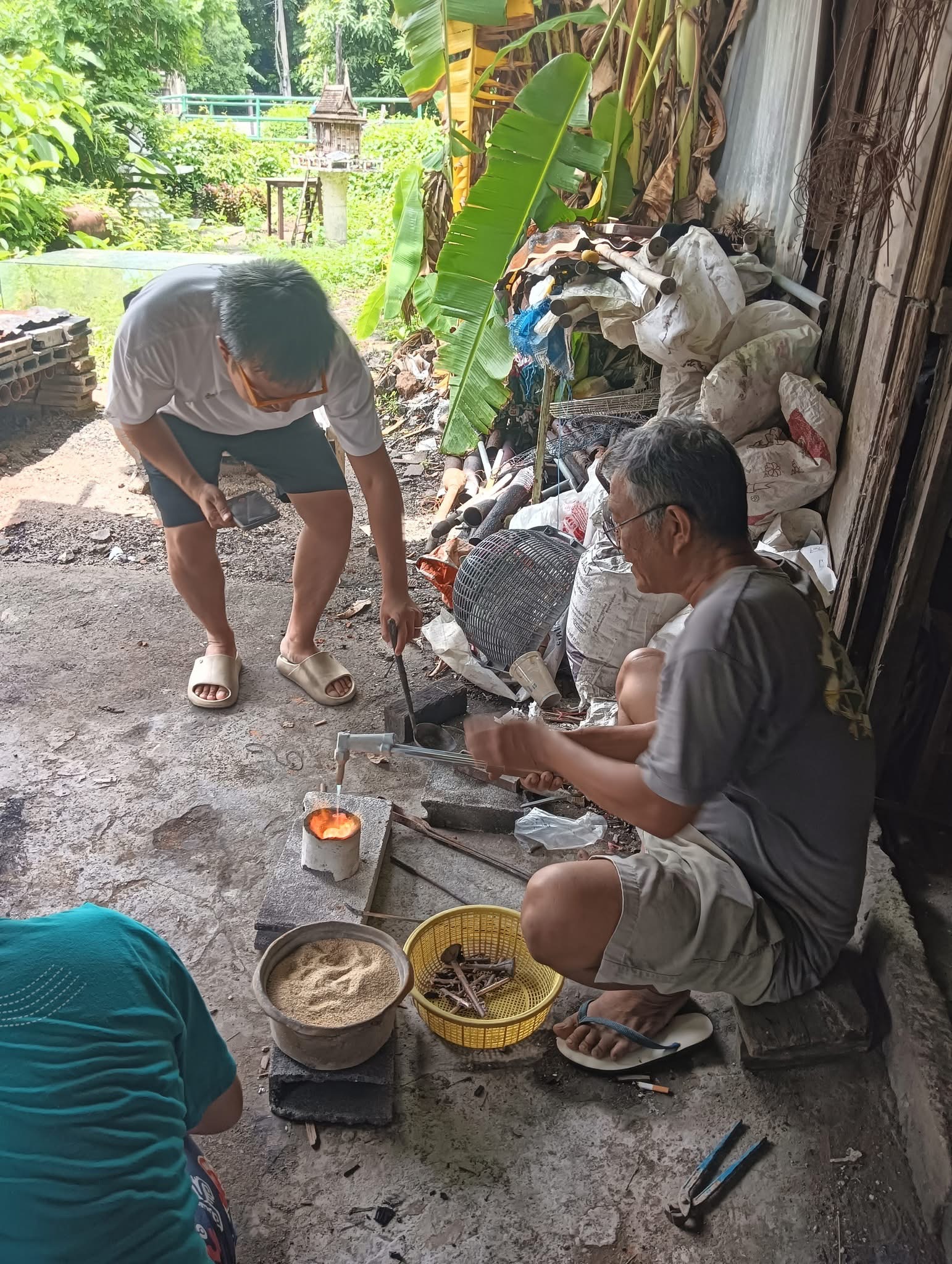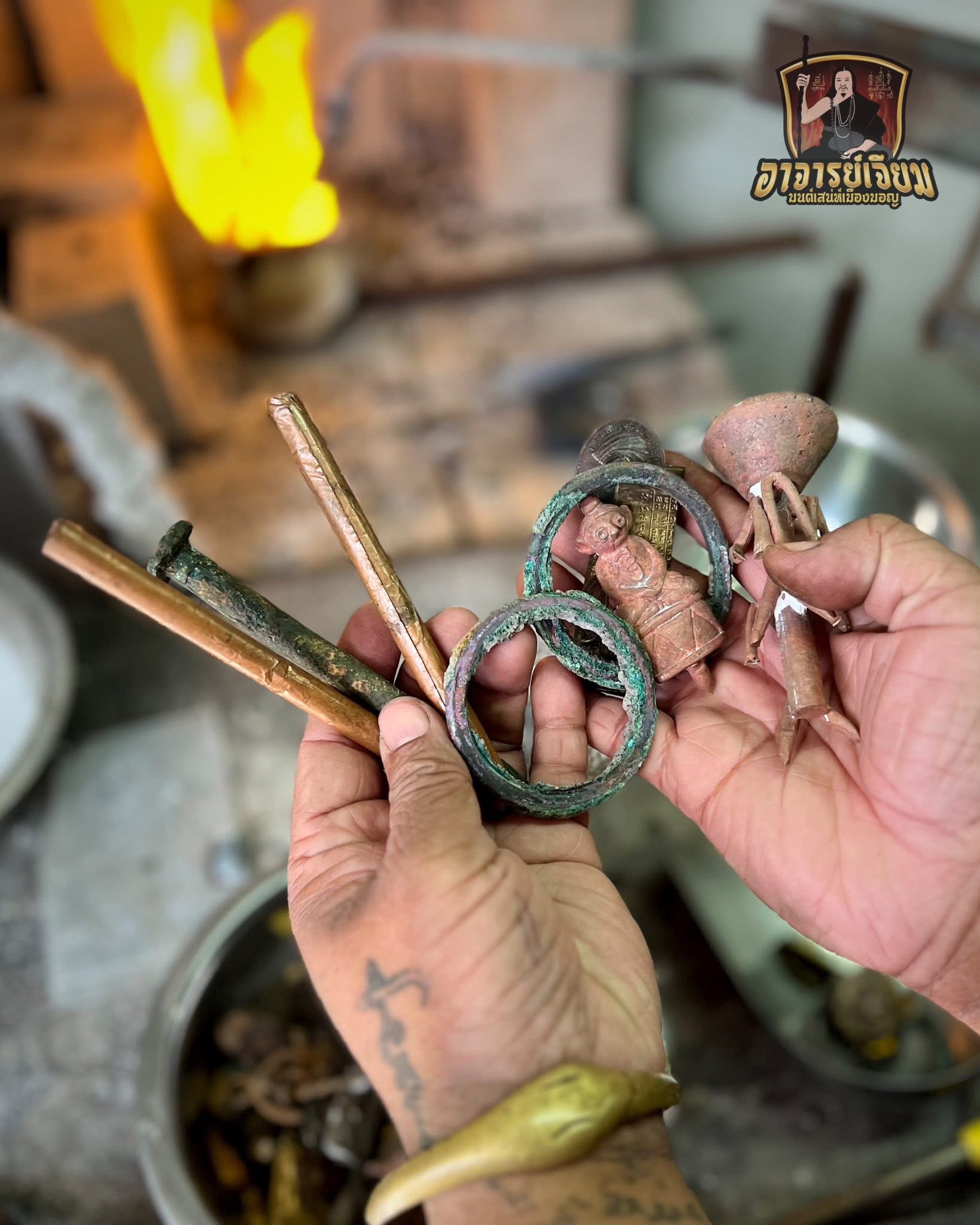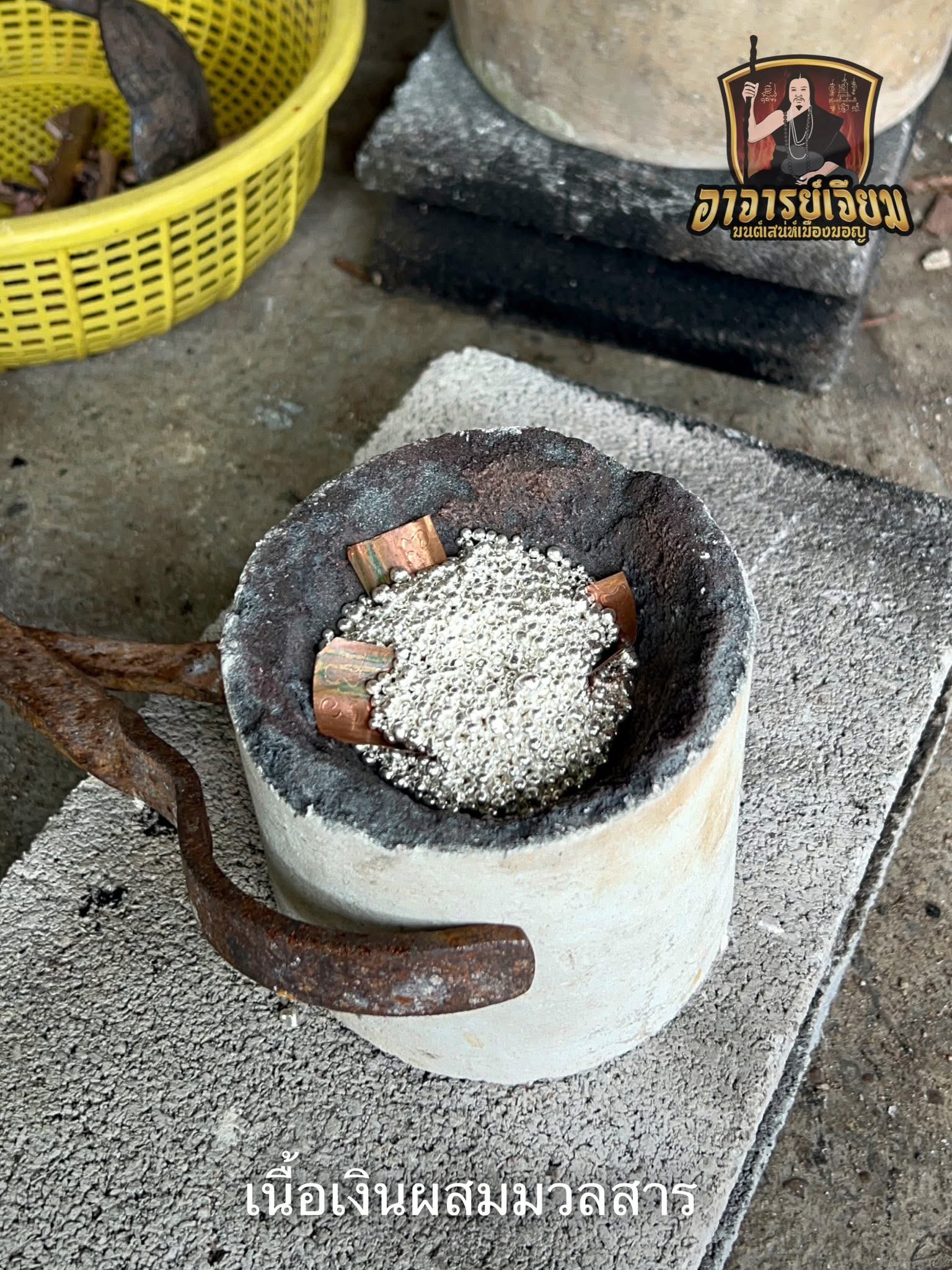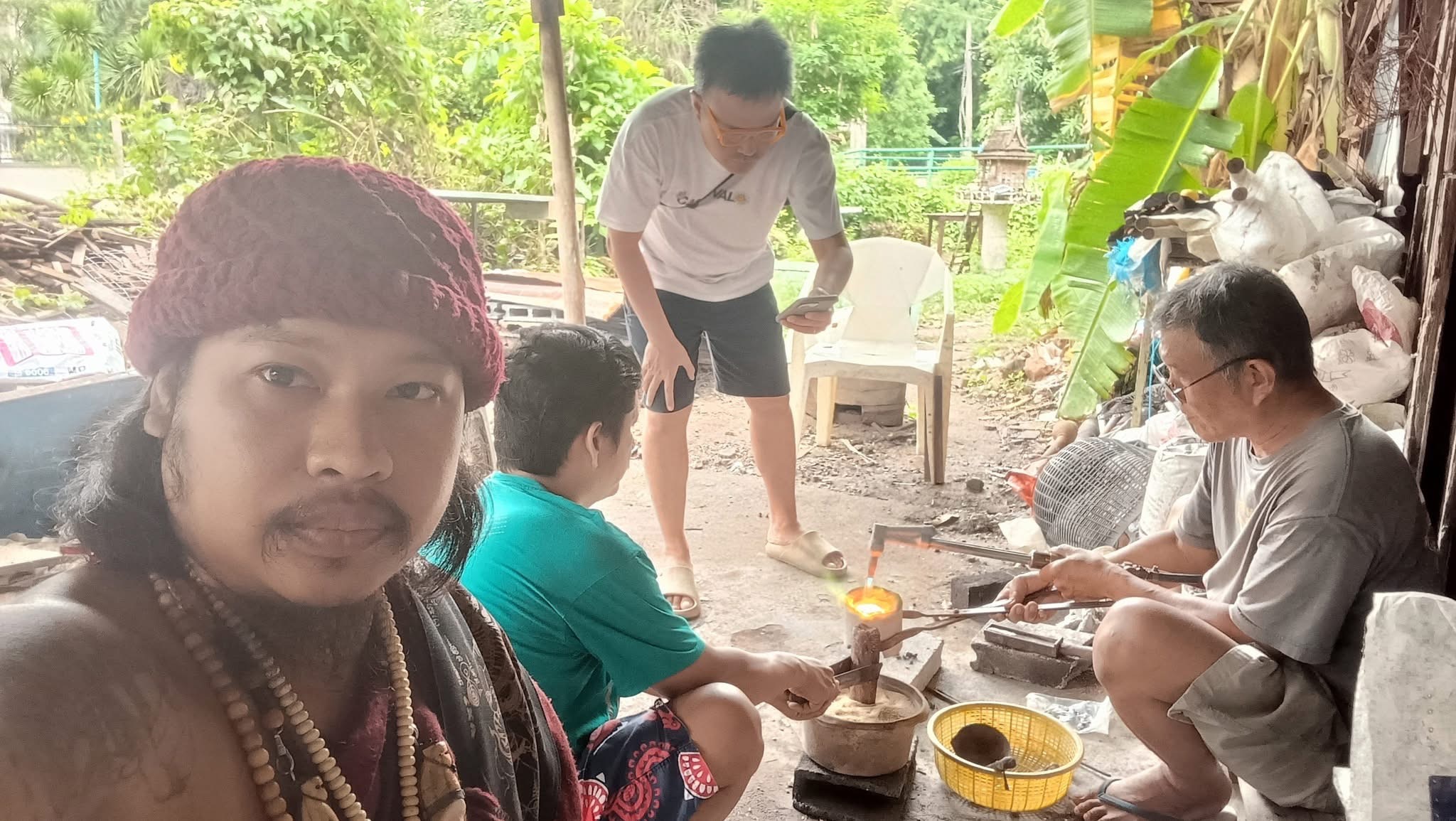 On Saturday, May 10, 2025 (14th waxing moon of the 6th lunar month, Year of the Snake), Ararn Jiam performed a ritual to consecrate the sacred materials at his sanctuary in the morning, following the auspicious time that had been set. After that, he traveled to the foundry to conduct the casting ceremony.