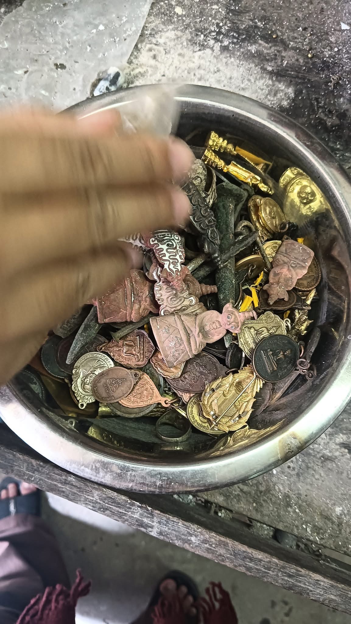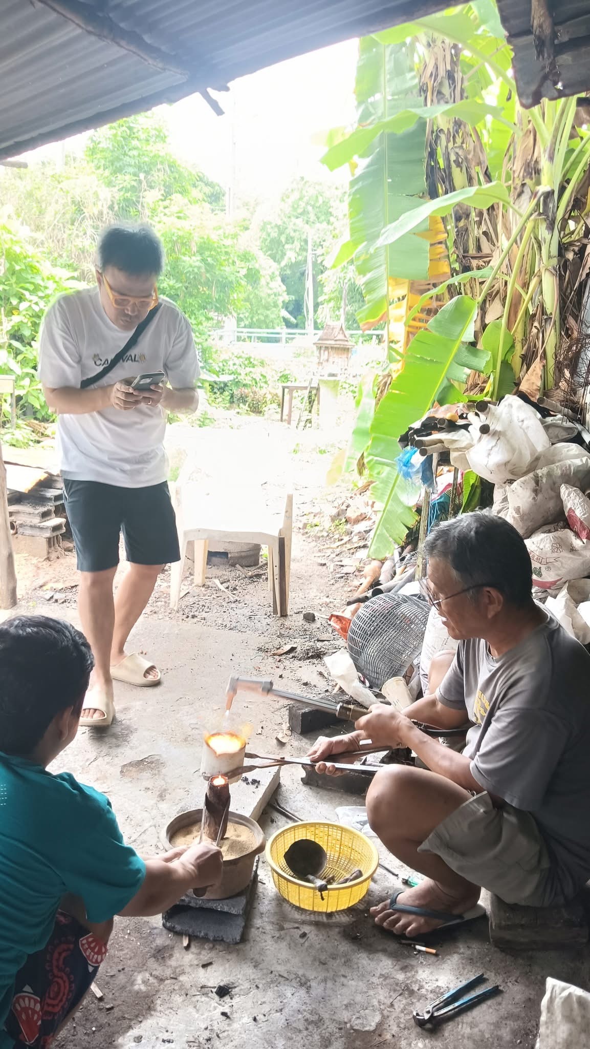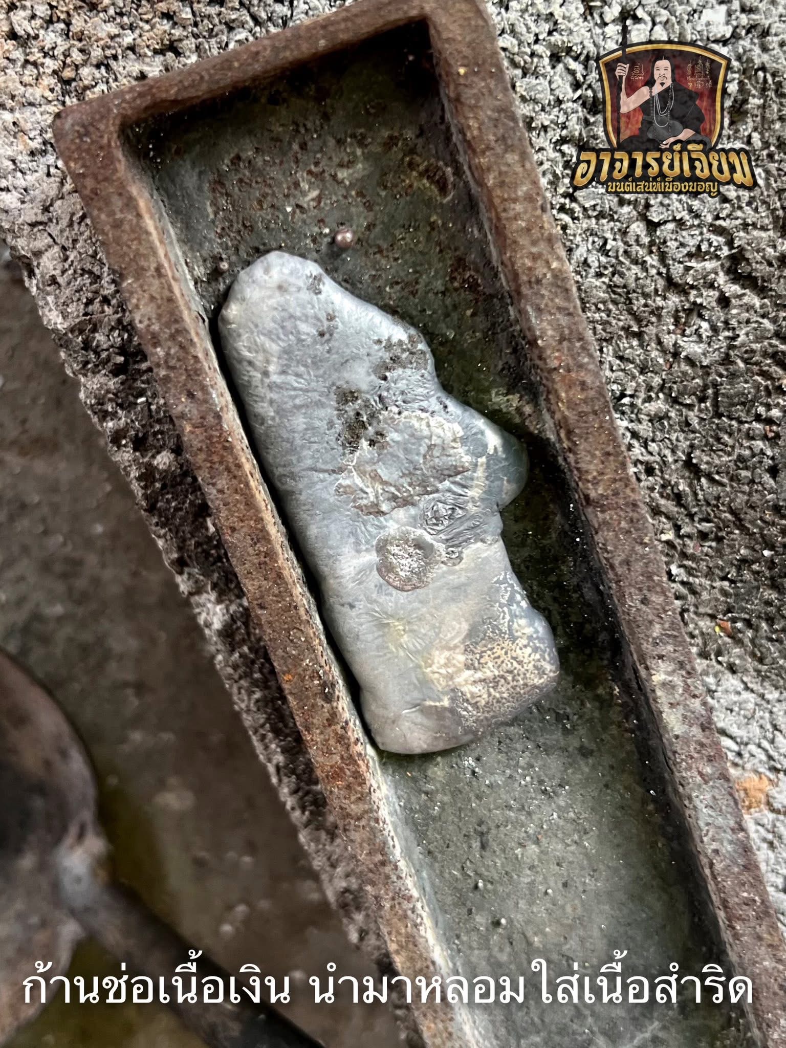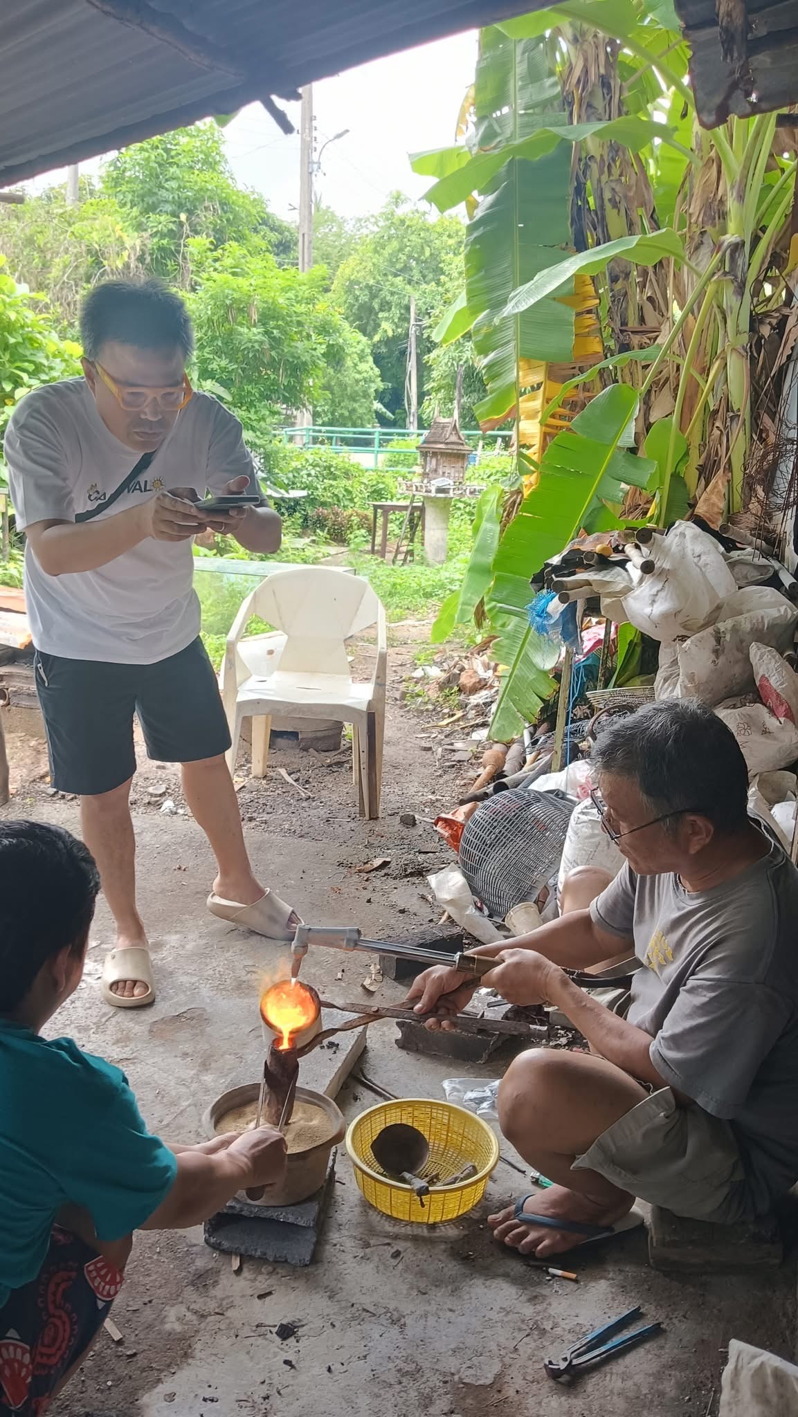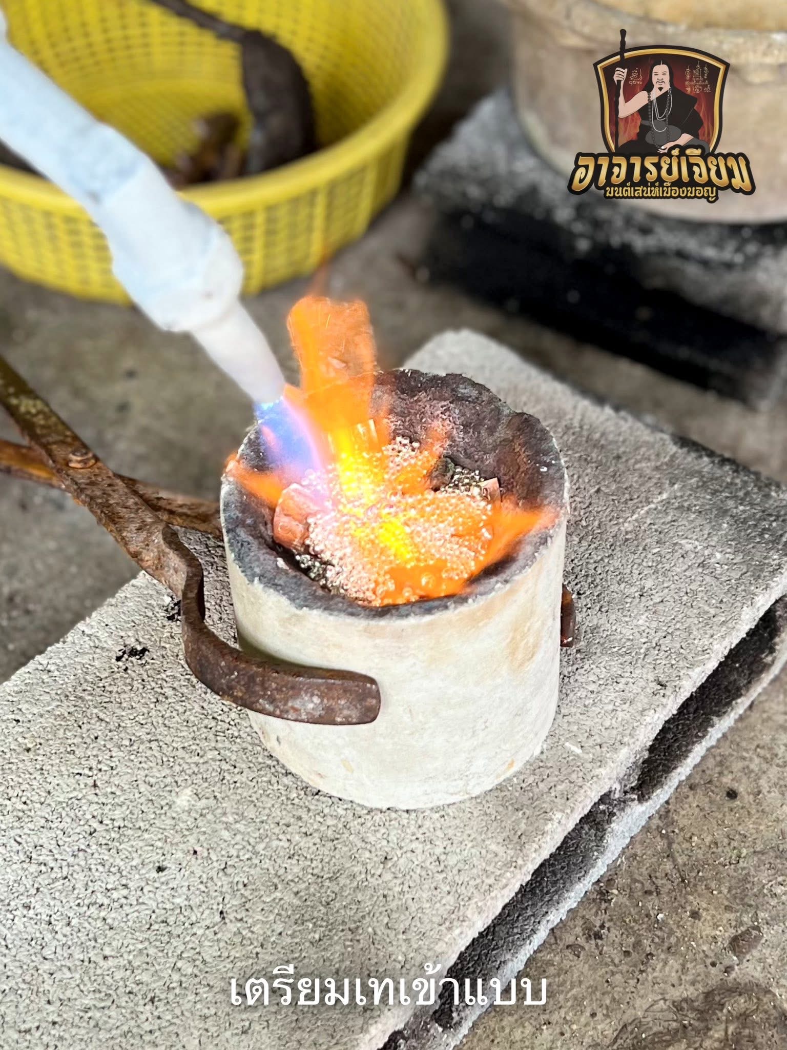 On Saturday, May 10, 2025 (14th waxing moon of the 6th lunar month, Year of the Snake), Ararn Jiam performed a ritual to consecrate the sacred materials at his sanctuary in the morning, following the auspicious time that had been set. After that, he traveled to the foundry to conduct the casting ceremony.
