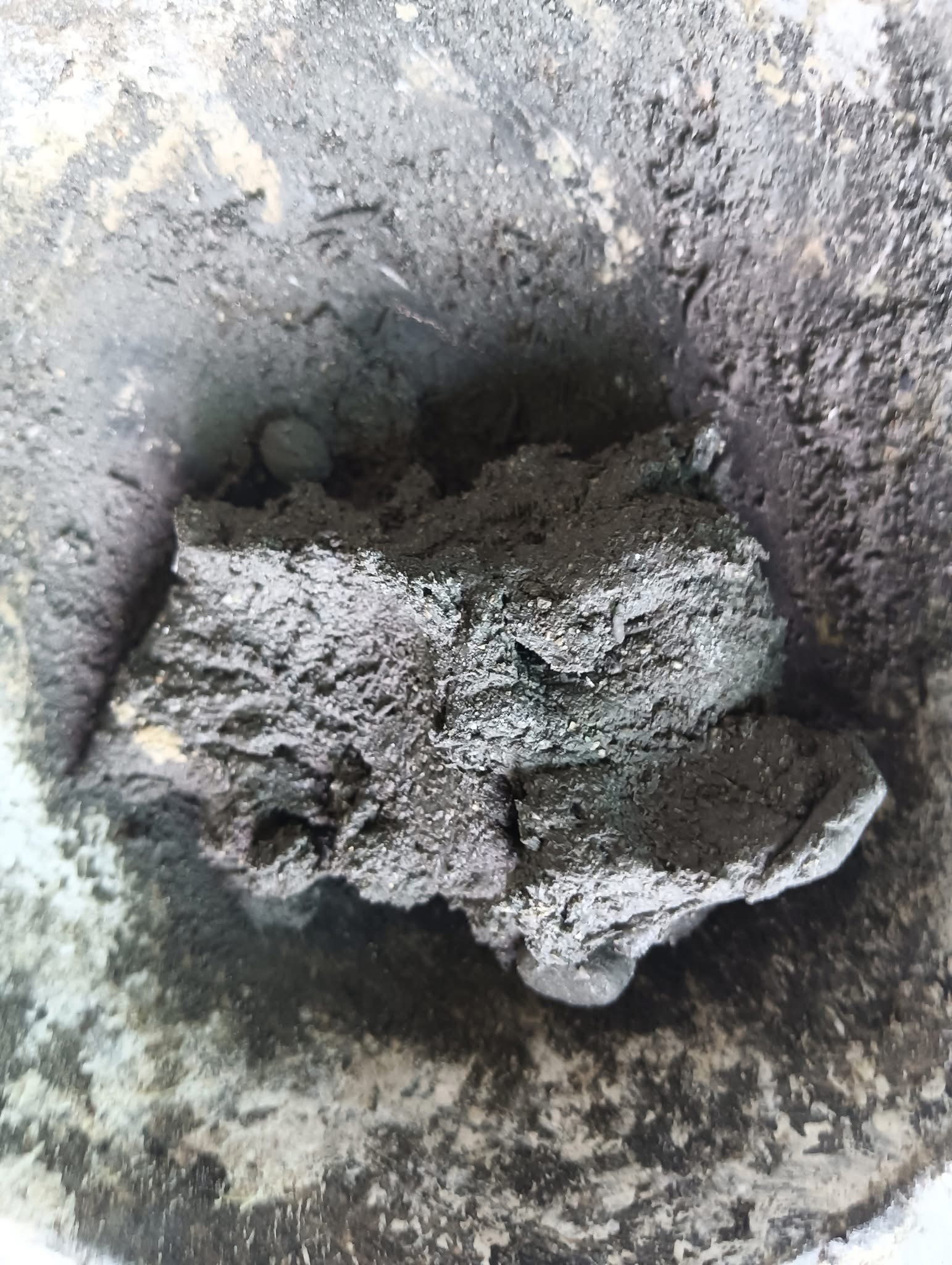 Palm-leaf manuscript ash mixed with various sacred materials, one of the key substances Arjarn Jiam used to fill the base of the Phaya Ngang Chakrapat Jan Siao (Crescent Moon Ngang Emperor).