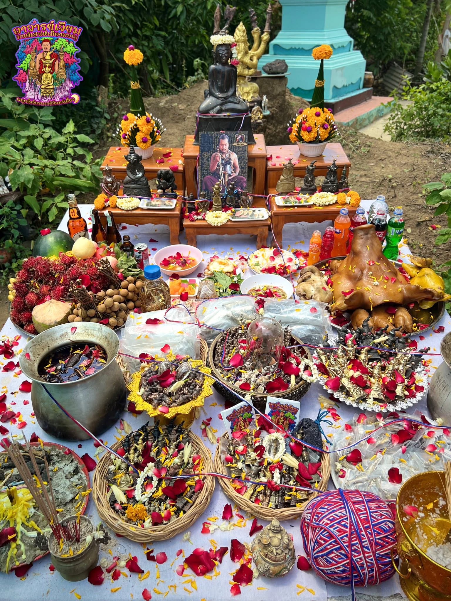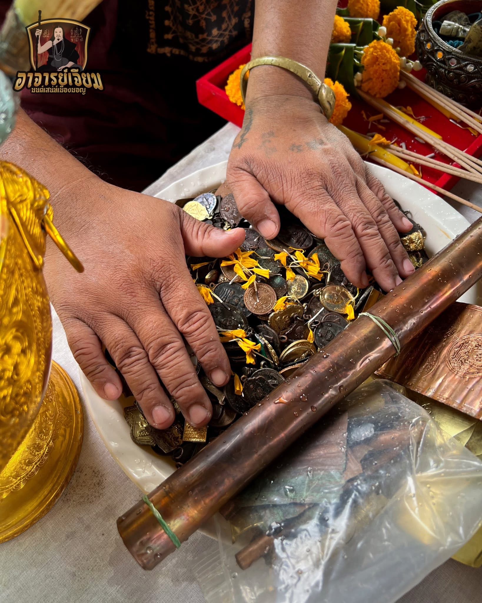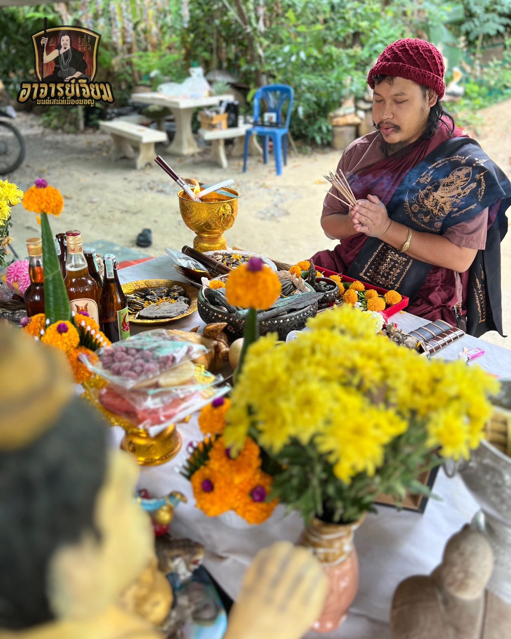 On August 15, 2025, Arjarn Jiam performed the final consecration ceremony. Arjarn Tong, a disciple of Arjarn Jiam, also participated in the ritual, which took place on Saturday, August 9, 2025.