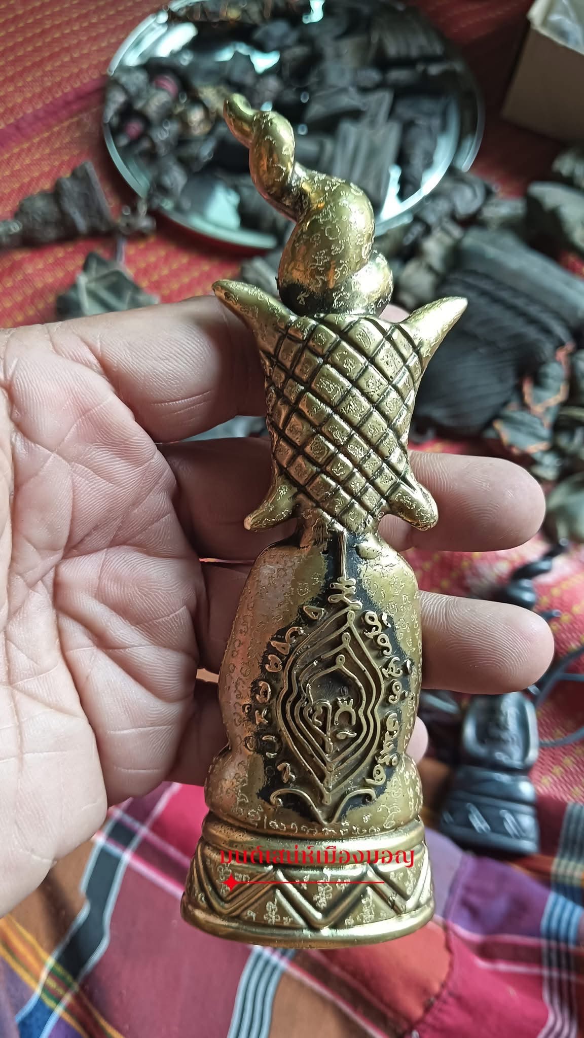 Arjarn Jiam has poured over 20 years of knowledge and experience with the sacred Ngang into this special edition. This version has been crafted following the ancient belief surrounding traditional Ngang characteristics: “Twisted topknot, crooked mouth, red eyes, long face, drooping ears, and a fishbone-like base, all marks of an authentic old-style Ngang".The creation follows the traditional methods passed down through generations. A special limited batch was cast using the rare and intricate Thai clay mold casting technique, a process that is difficult and time-consuming, making it increasingly rare in the modern era.