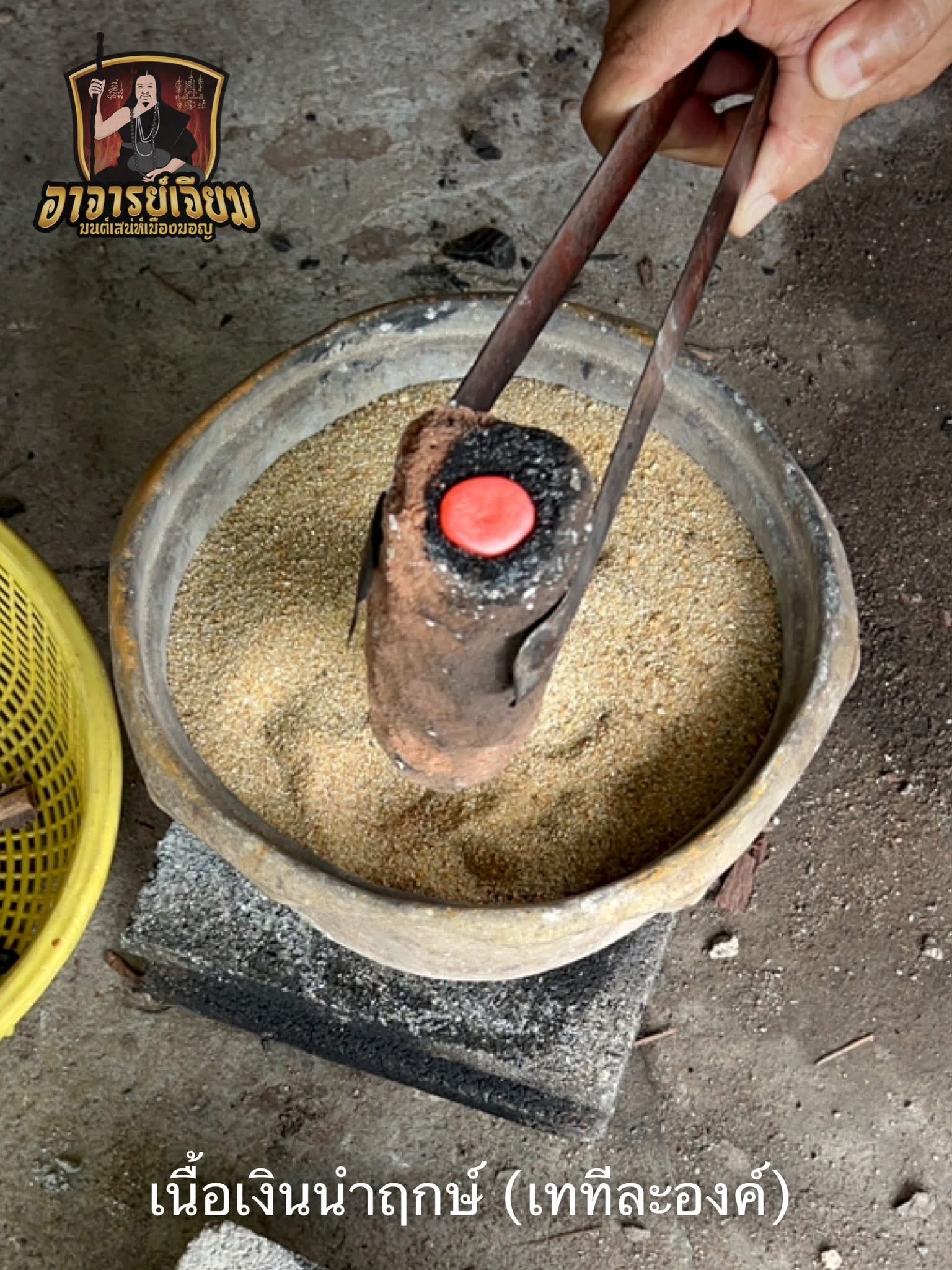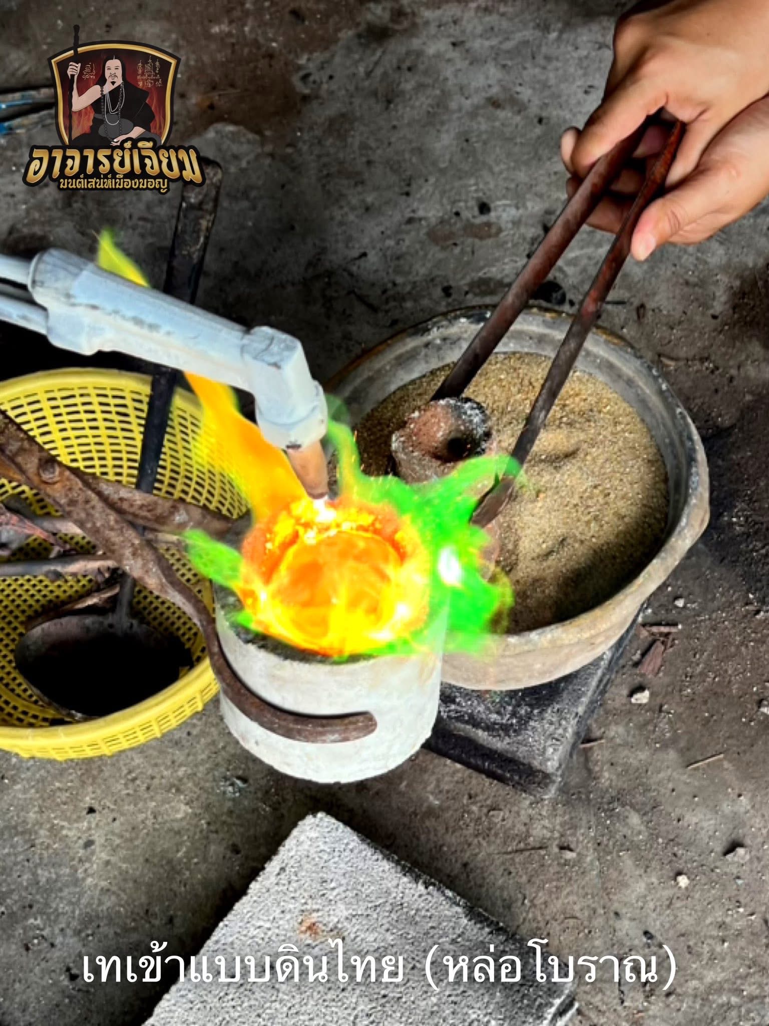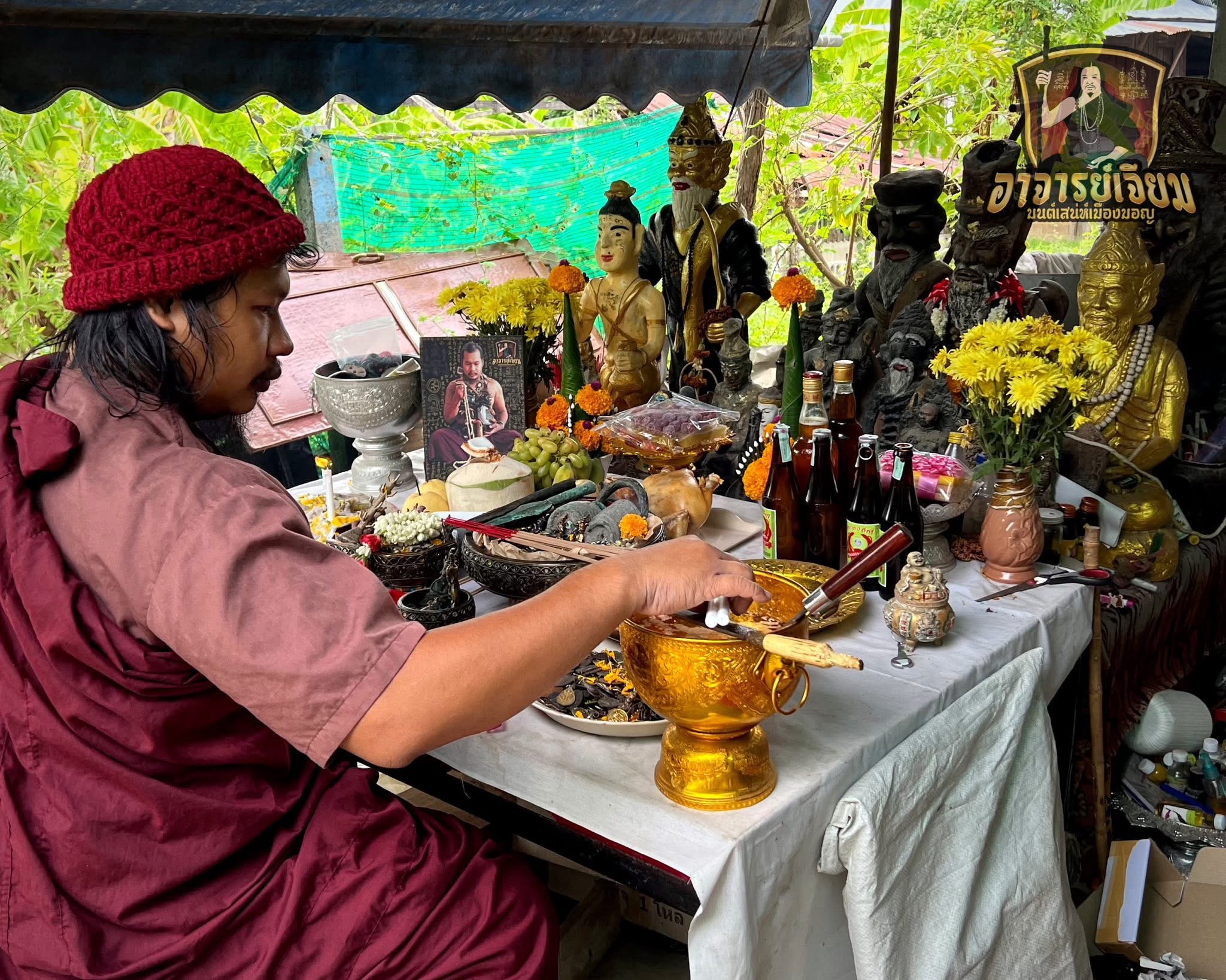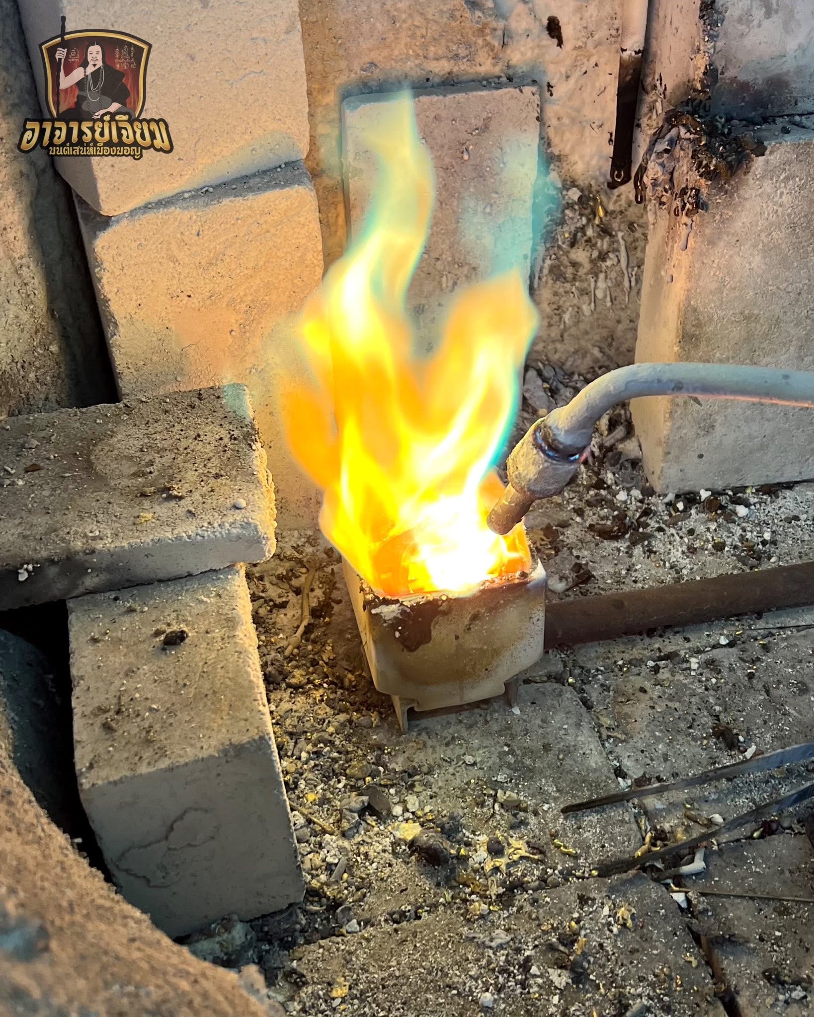Arjarn Jiam carefully prepared and cleaned the metals and sacred materials before melting them into the crucible.