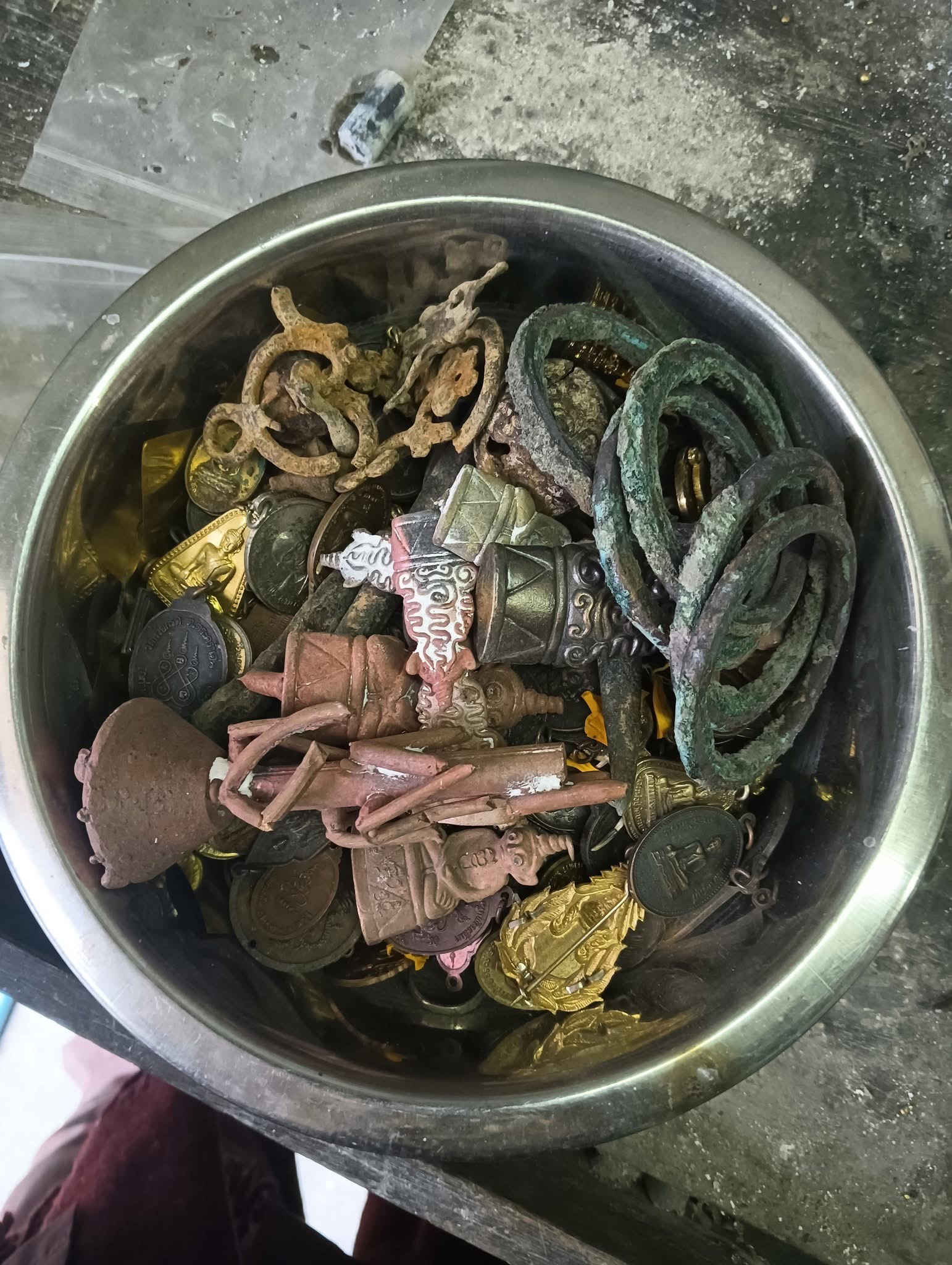 - เหรียญเกจิคณาจารย์ที่หลอมแล้ว (สาดกริ่งในครั้งก่อน)