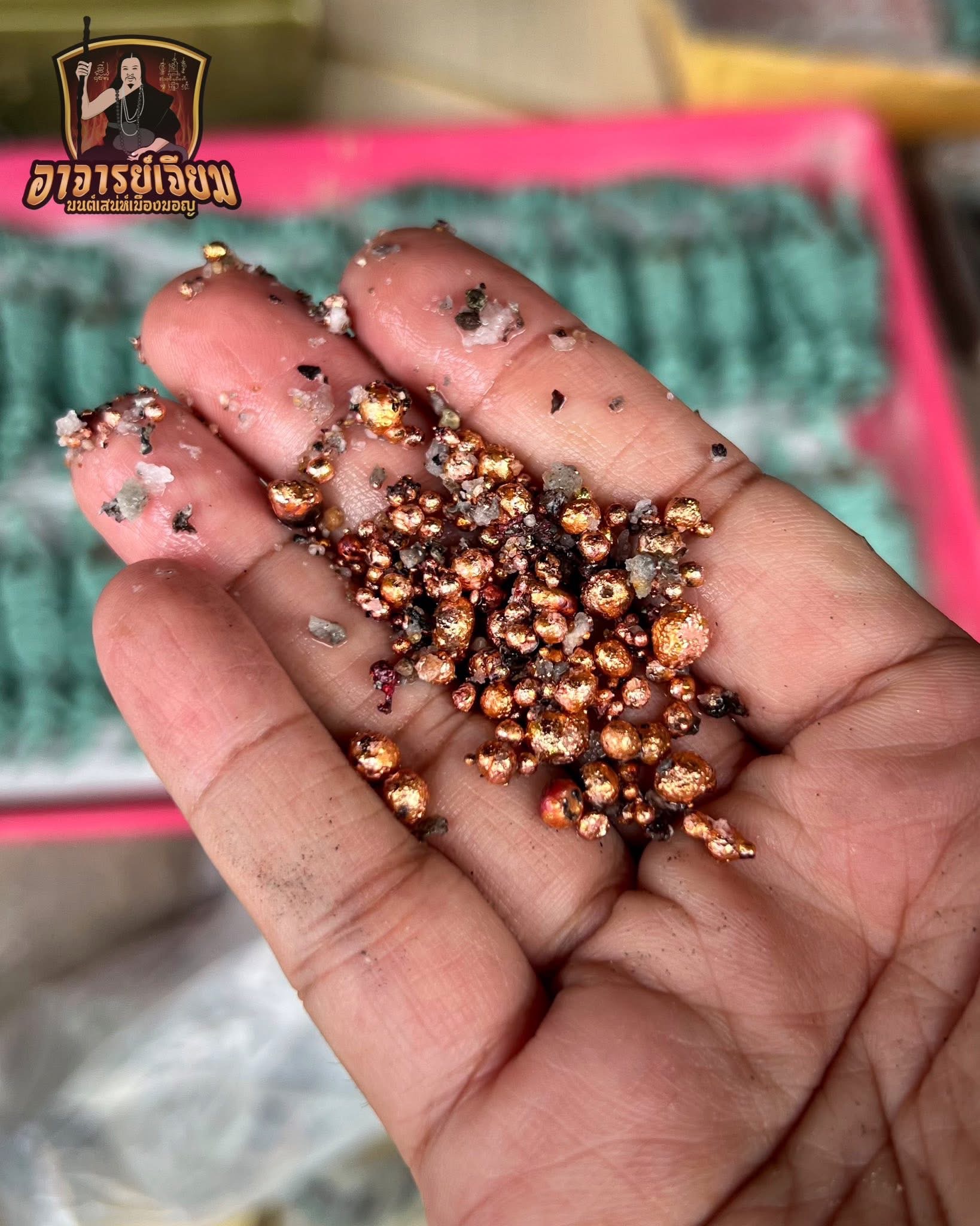 - Remnants of sacred materials from various previous batches of Arjarn Jiam's amulets.
