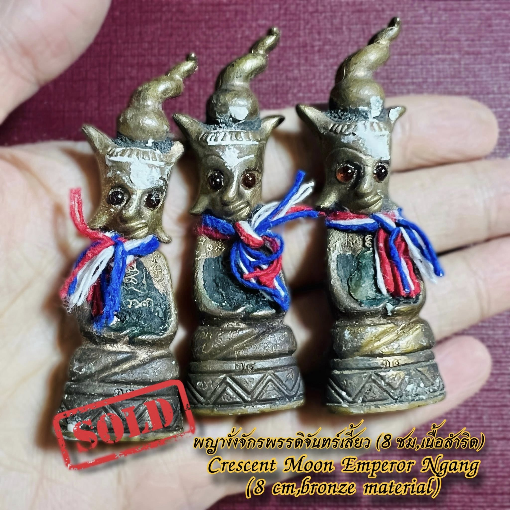 Crescent Moon Emperor Ngang,ancient bronze clay casting.Deeply powerful in accordance with the old Ngang scripture, inscribed withhand-written Yantra around the body.A truly captivating piece, highly cherished by Ngang enthusiasts.