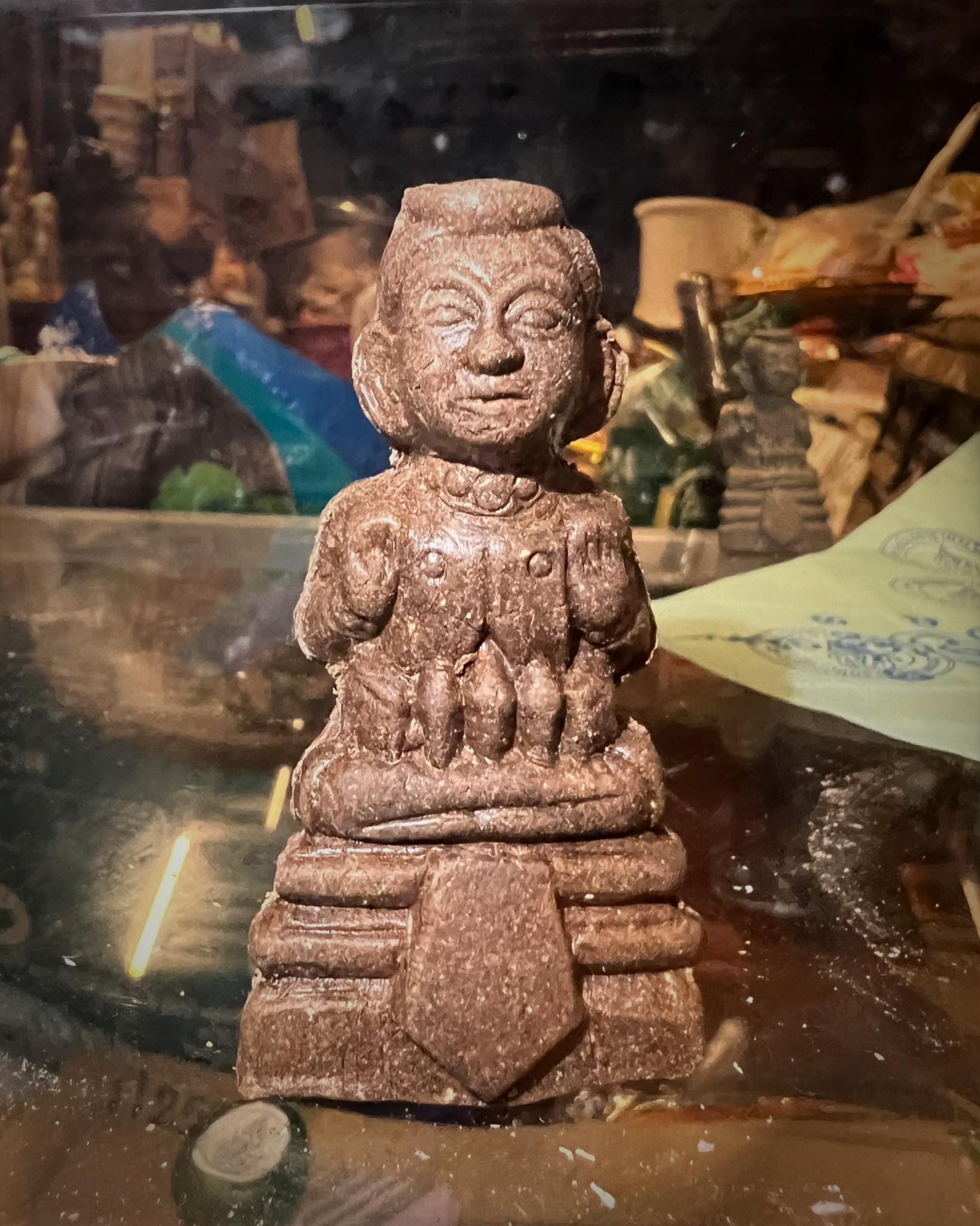This prototype Kuman Thong figure, which was placed in the display cabinet at the temple in June 2025, is the origin of the “Mystic Powder Kuman Thong (medium size,entirely made of mystic powder)”.