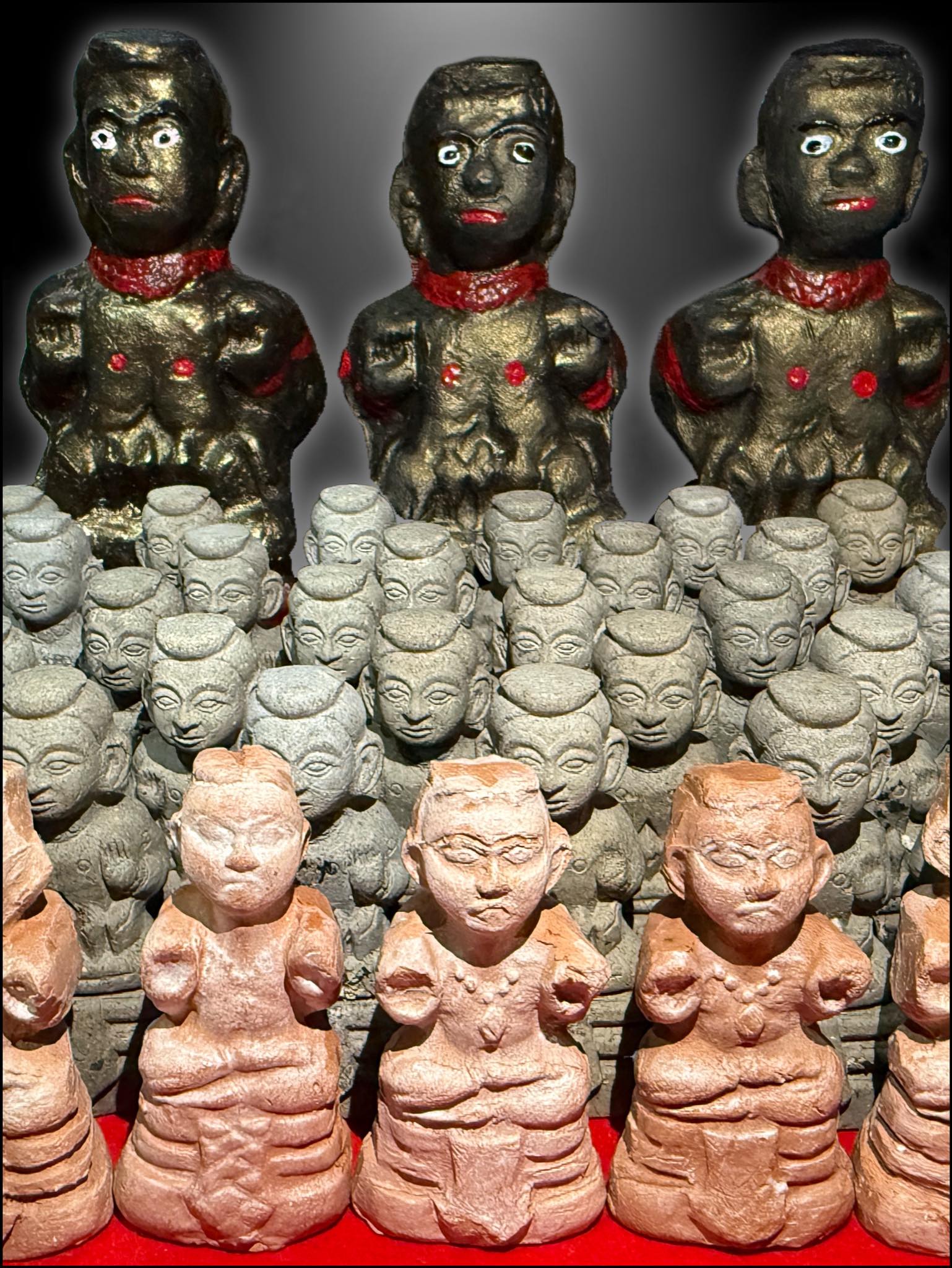 This disciple of Luang Por Chamnan began collecting and venerating one or two pieces at a time, inspired by his personal experiences. He shared, “I’ve never encountered a Kuman Thong as powerful as this before.” Today, he has amassed an entire army of Kuman Thong, as you can see.
