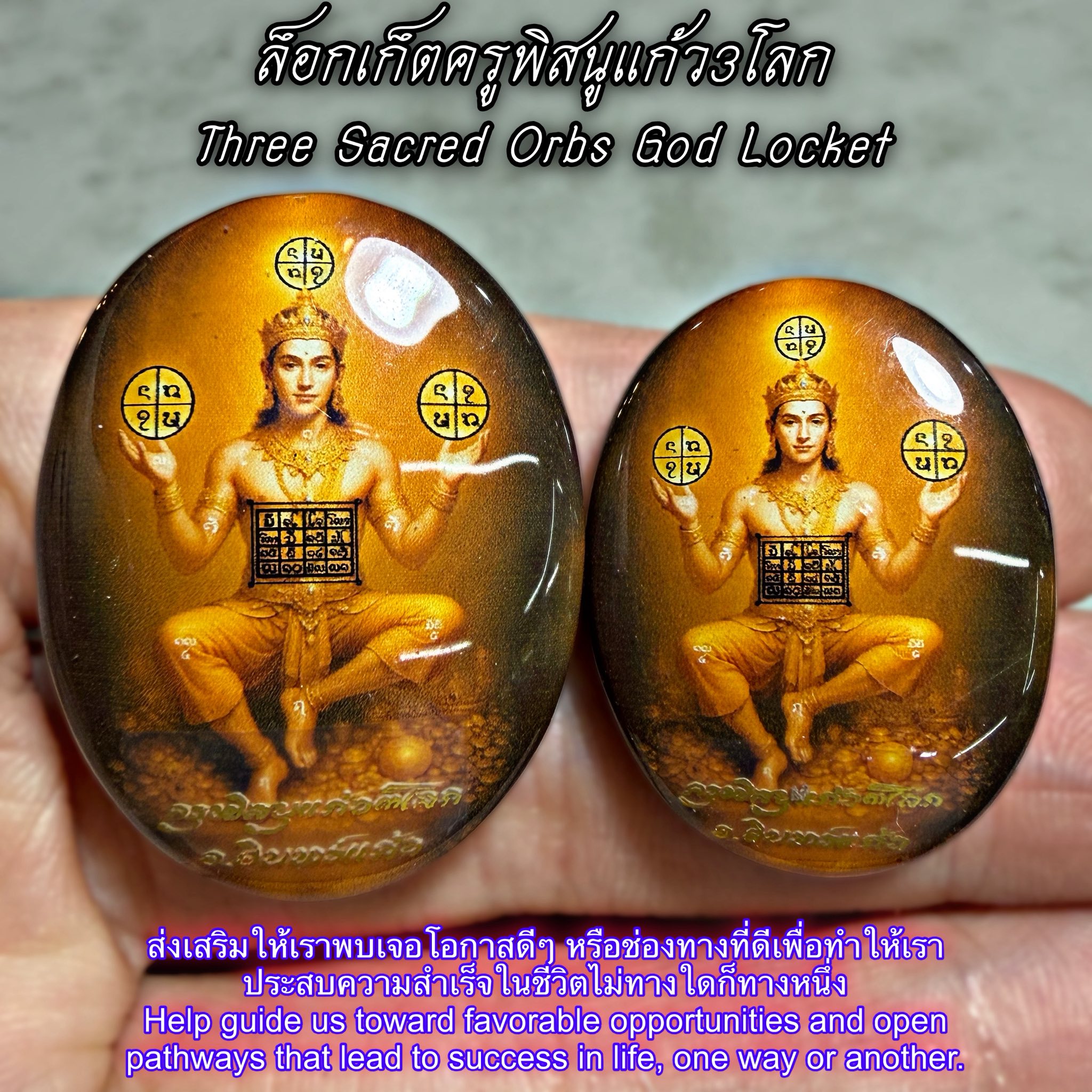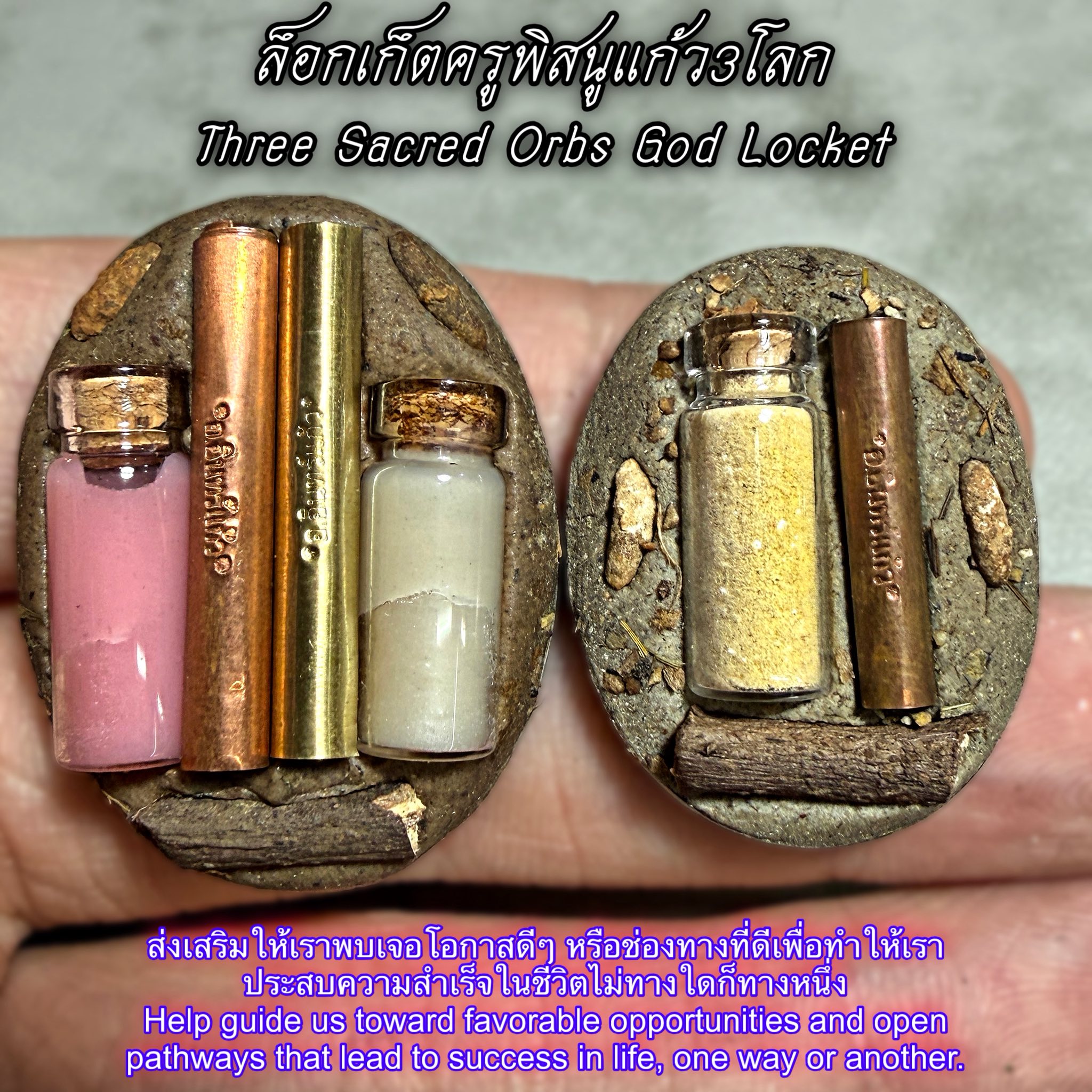 ล็อกเก็ตครูพิสนูแก้ว3โลก (ขนาดเล็ก) Three Sacred Orbs God Locket. (small size) SKU-04004