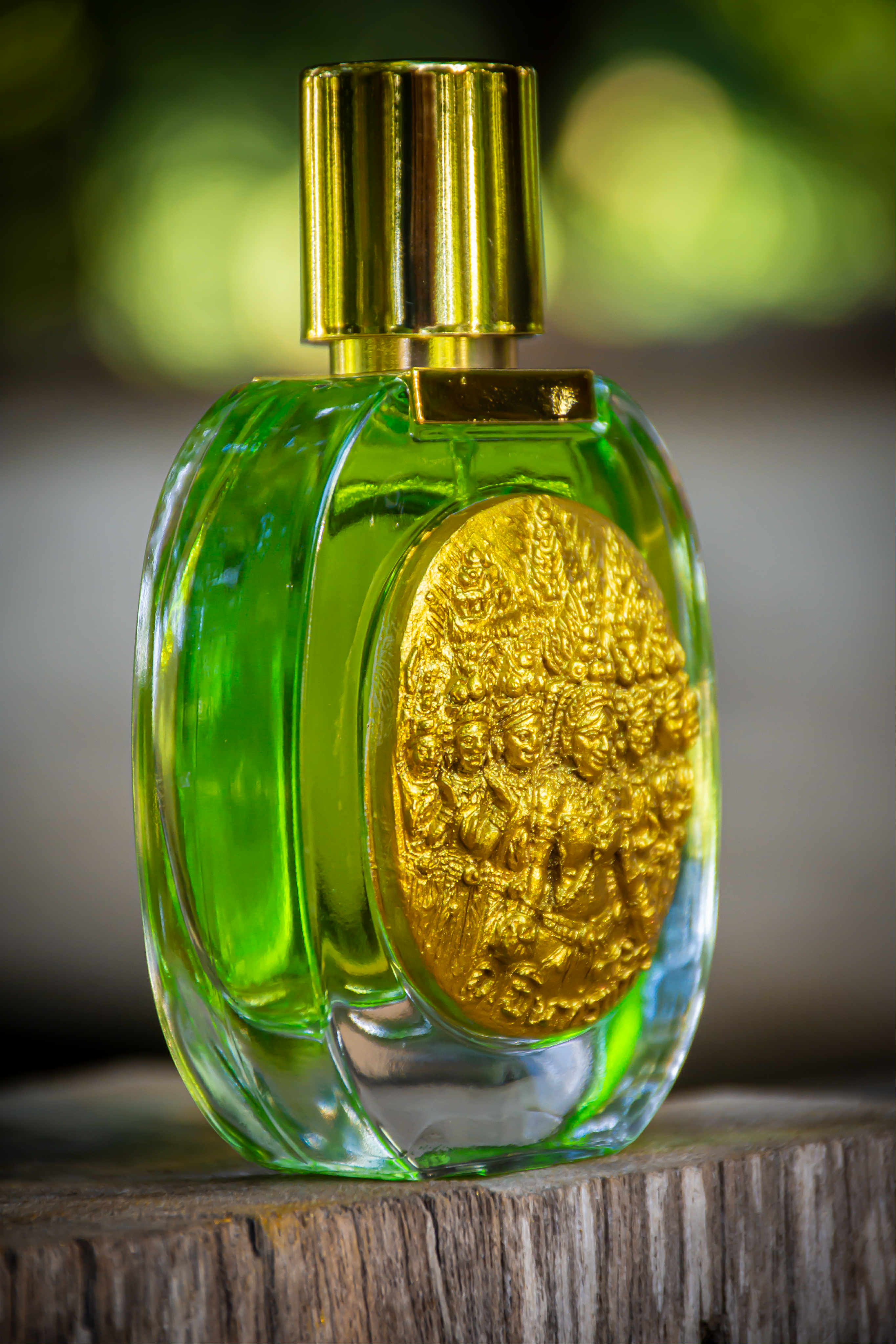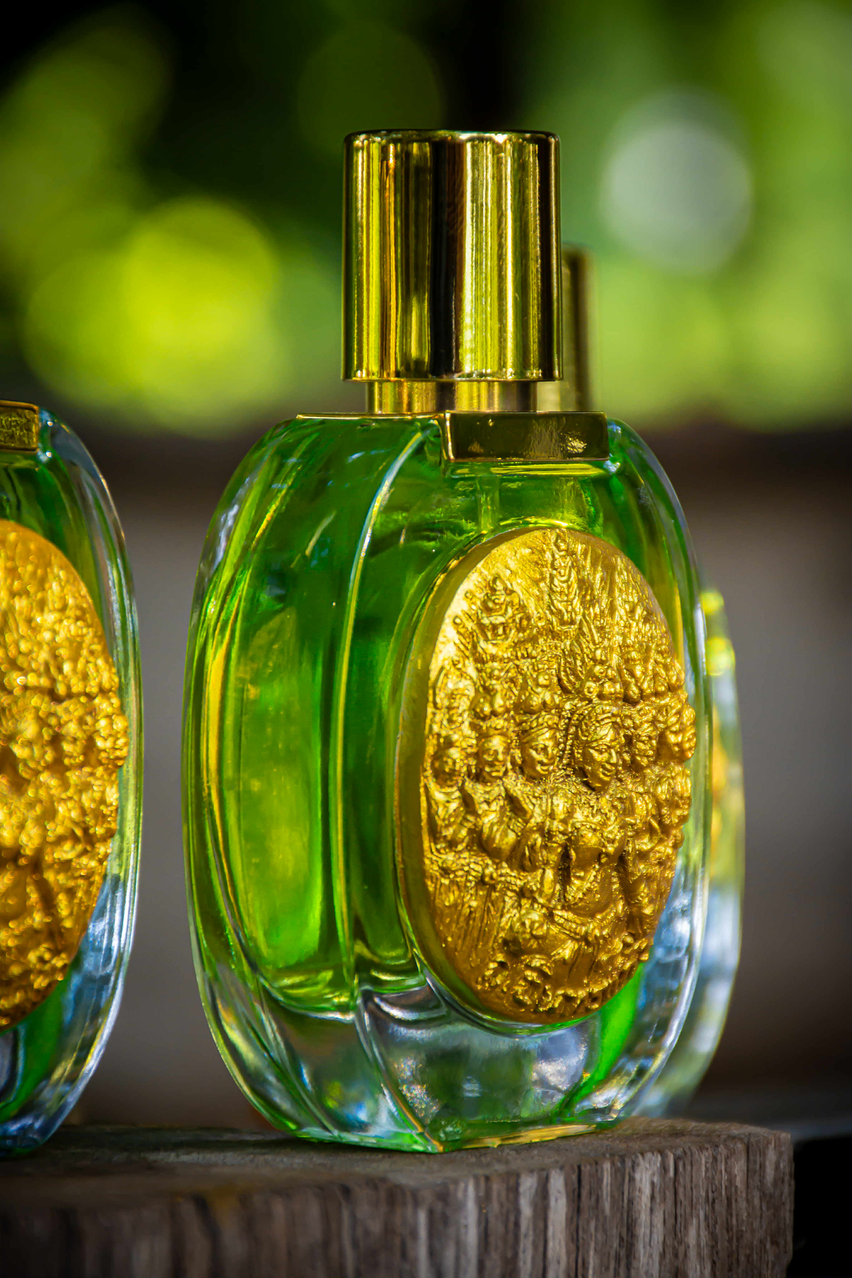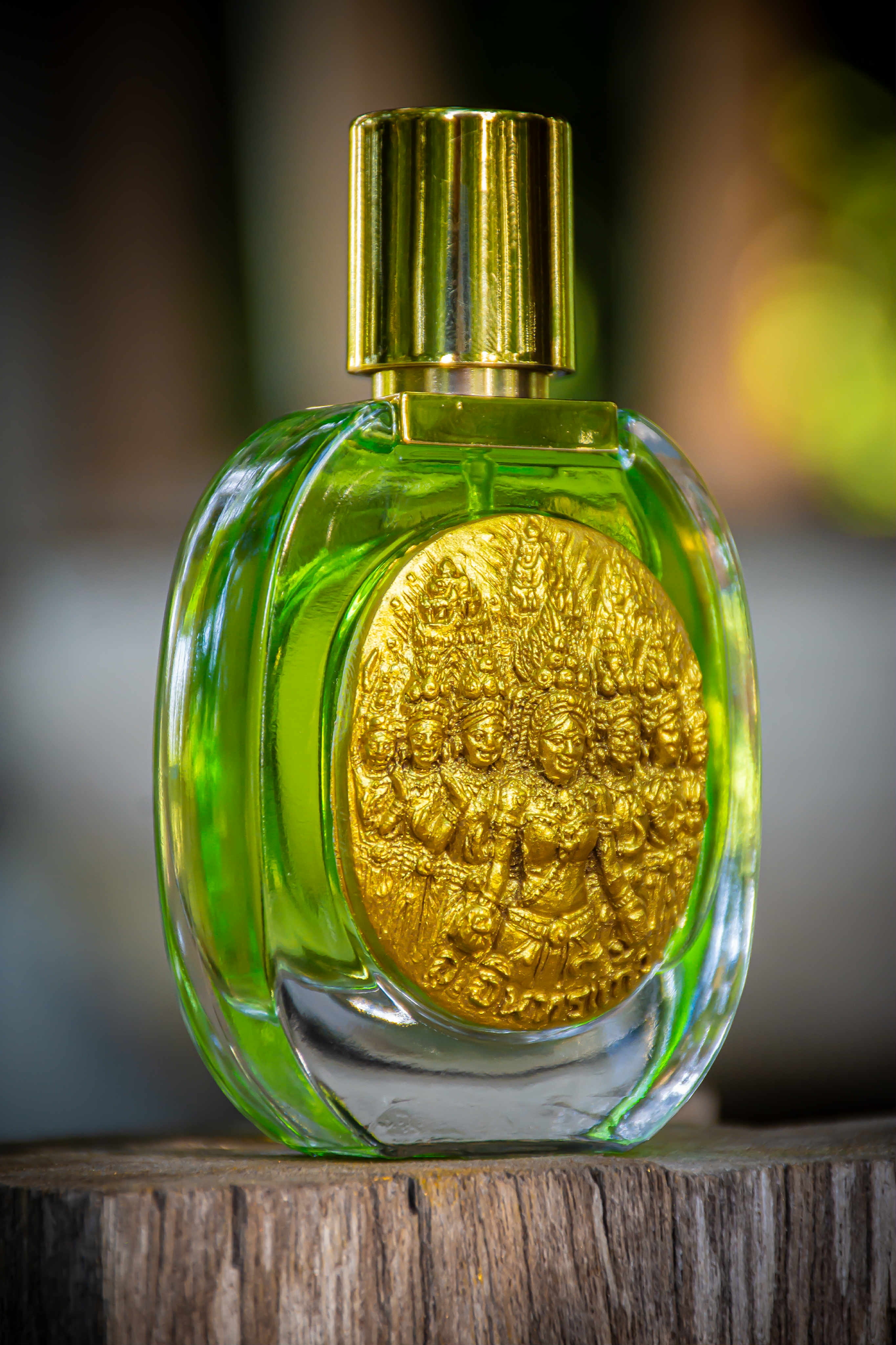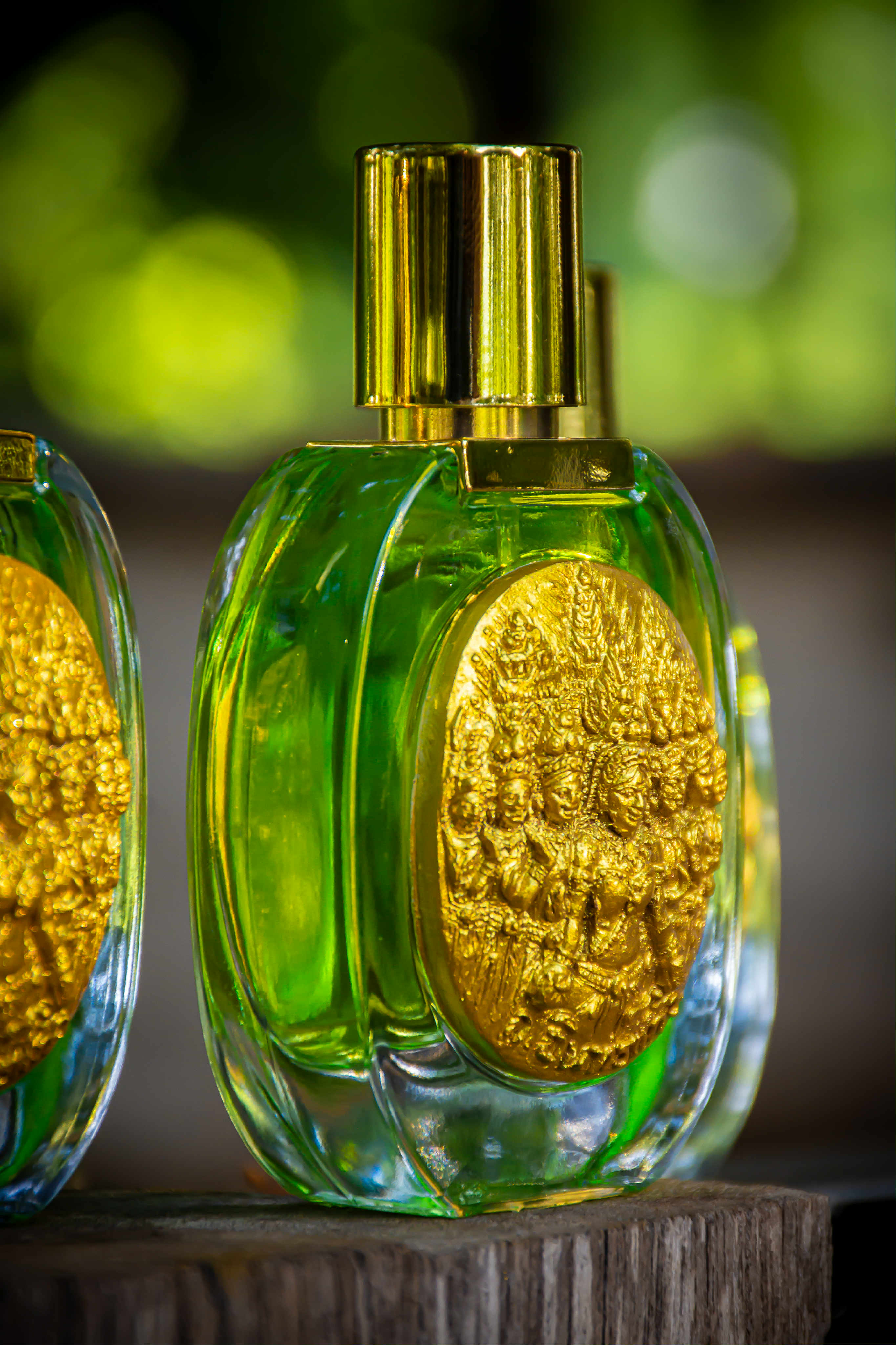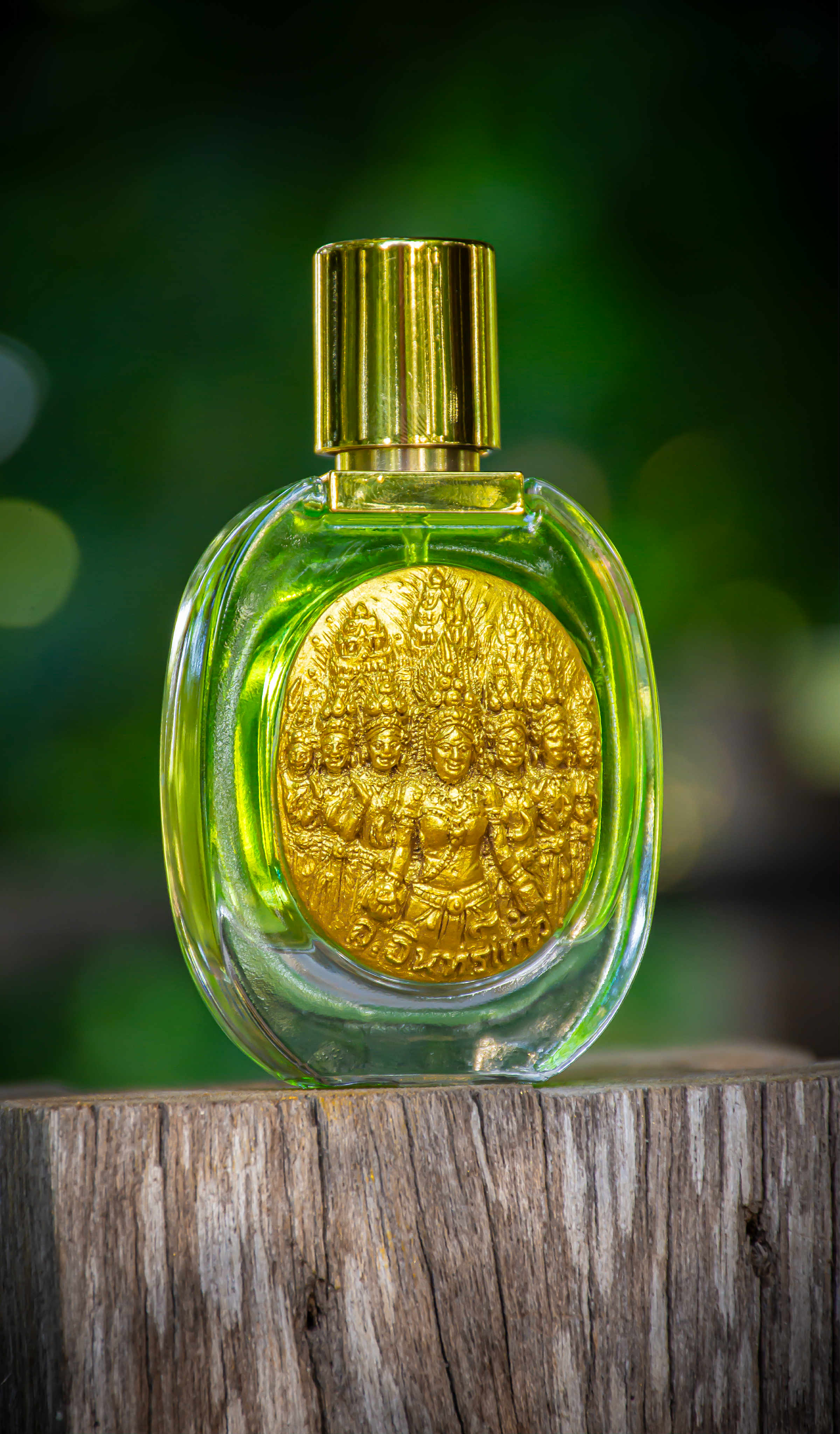 Arjarn Inkaew, upon studying the ancient manuscript and recognizing its great power, chose to bring it to life in the form of a sacred perfume. Arjarn Inkaew meticulously designed and sculpted the seven Apsaras, celestial maidens by hand, using sacred materials he had collected over many years. Each figure was hand-pressed and affixed to the perfume bottle (big bottle) with care. Even after the perfume is finished, the bottle itself can be kept for veneration, used for prayer, or the Apsara figure can be removed and enshrined separately.