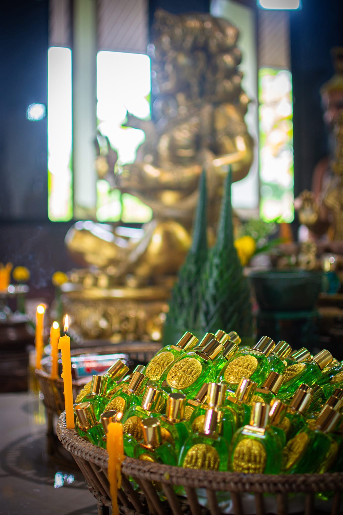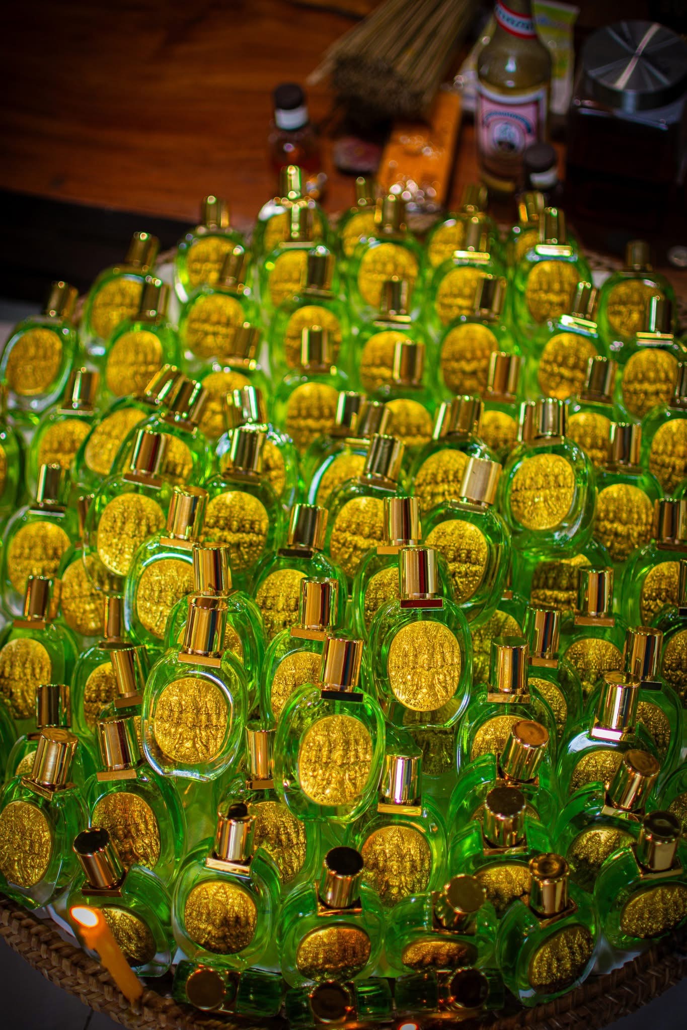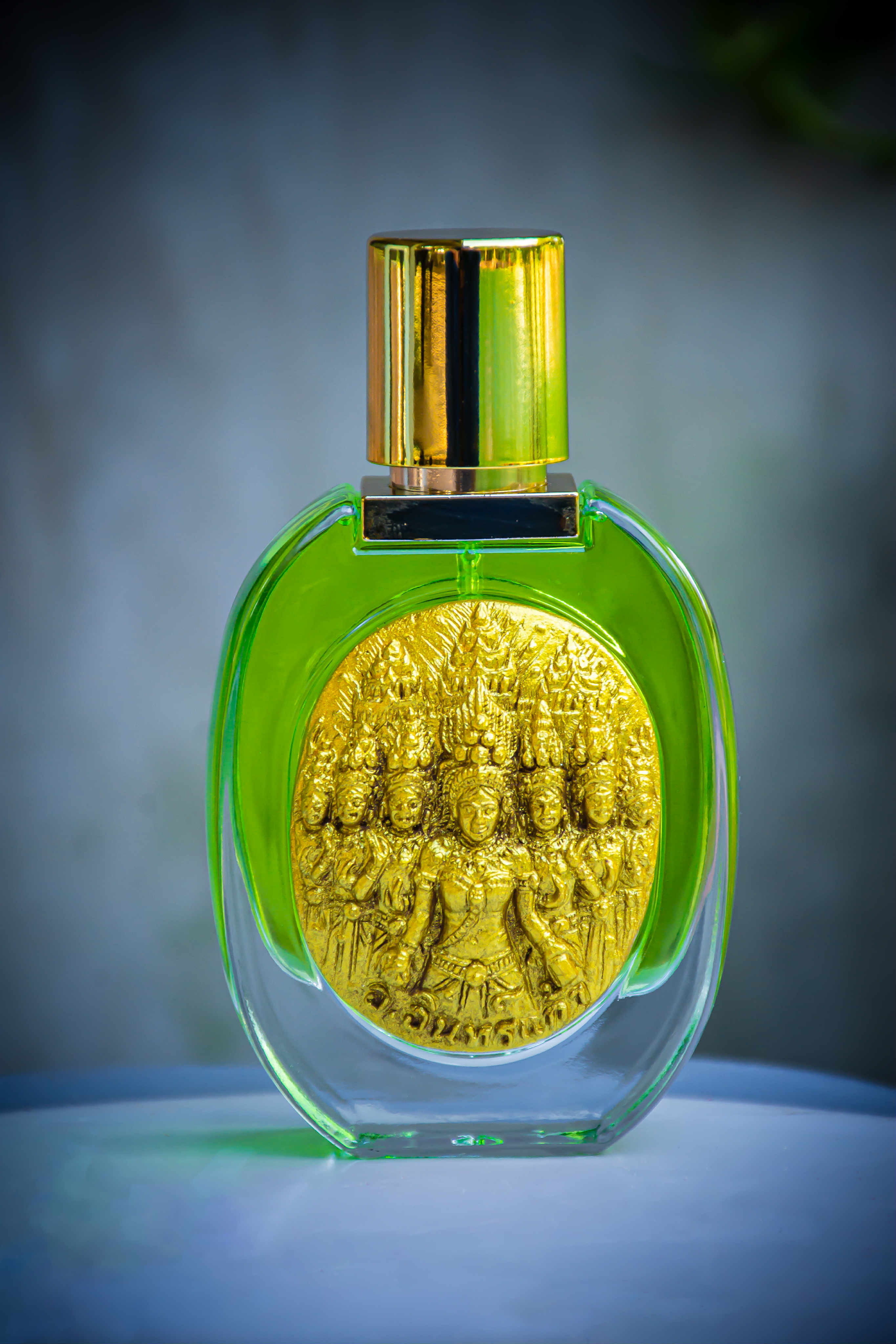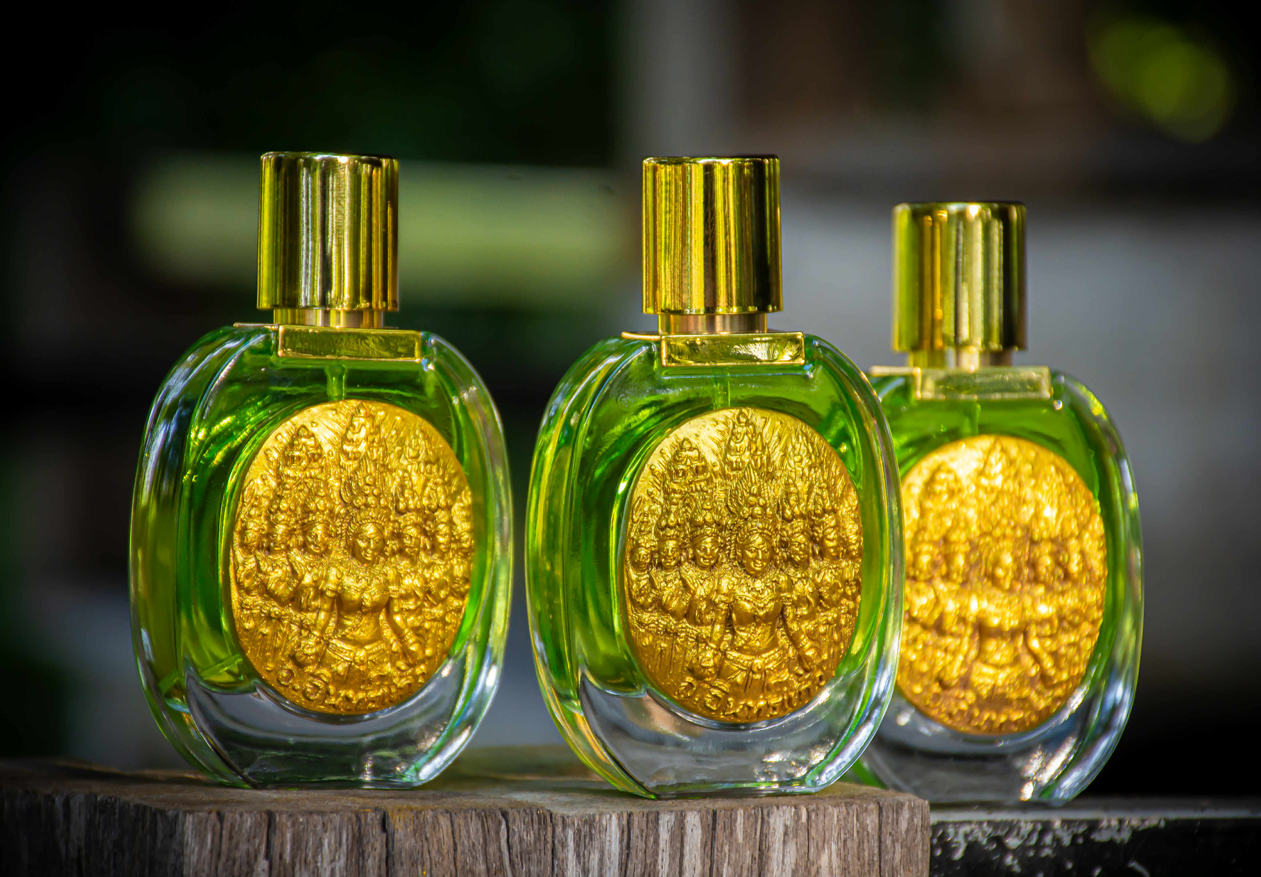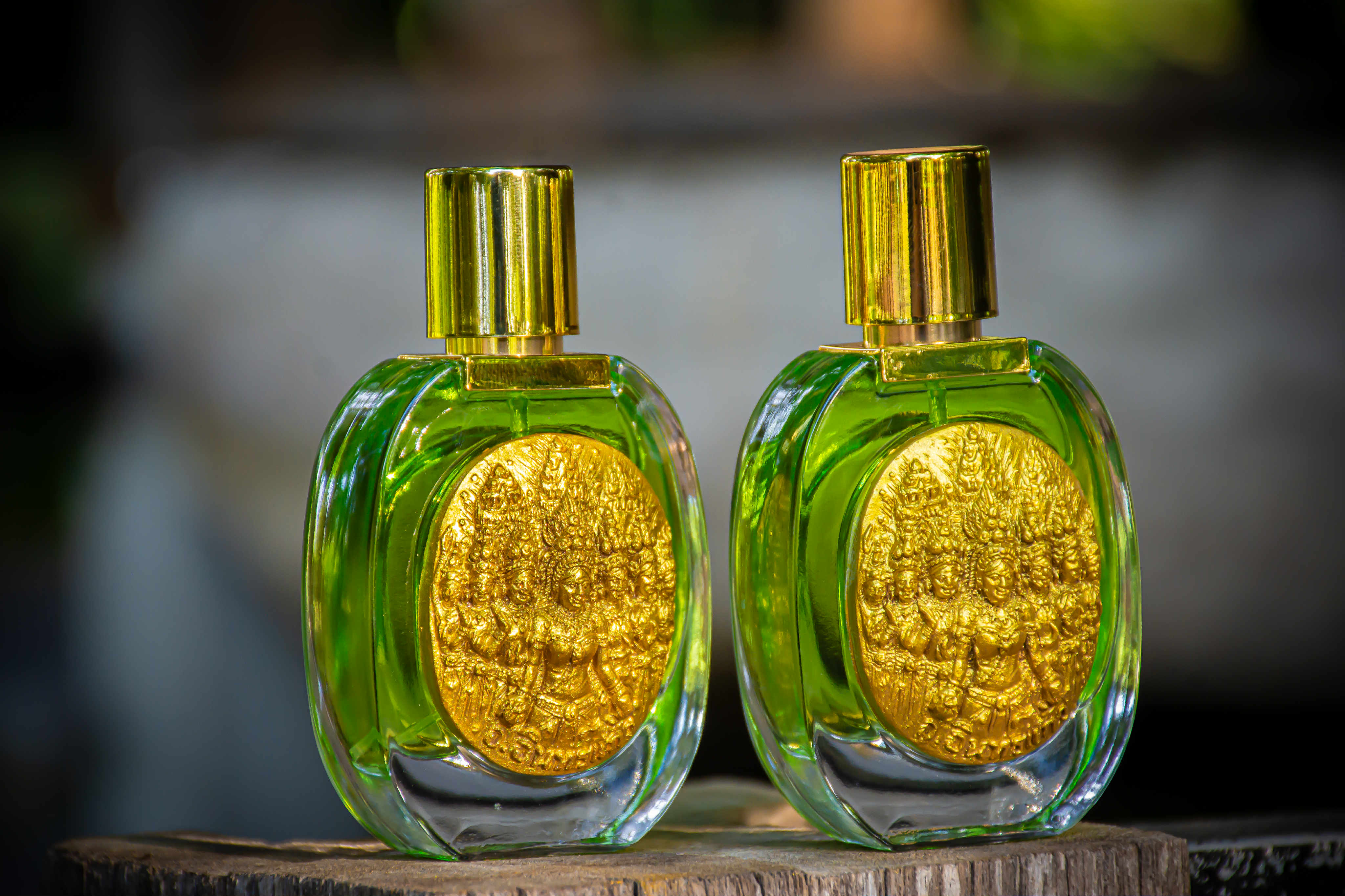 Arjarn Inkaew, upon studying the ancient manuscript and recognizing its great power, chose to bring it to life in the form of a sacred perfume. Arjarn Inkaew meticulously designed and sculpted the seven Apsaras, celestial maidens by hand, using sacred materials he had collected over many years. Each figure was hand-pressed and affixed to the perfume bottle (big bottle) with care. Even after the perfume is finished, the bottle itself can be kept for veneration, used for prayer, or the Apsara figure can be removed and enshrined separately.