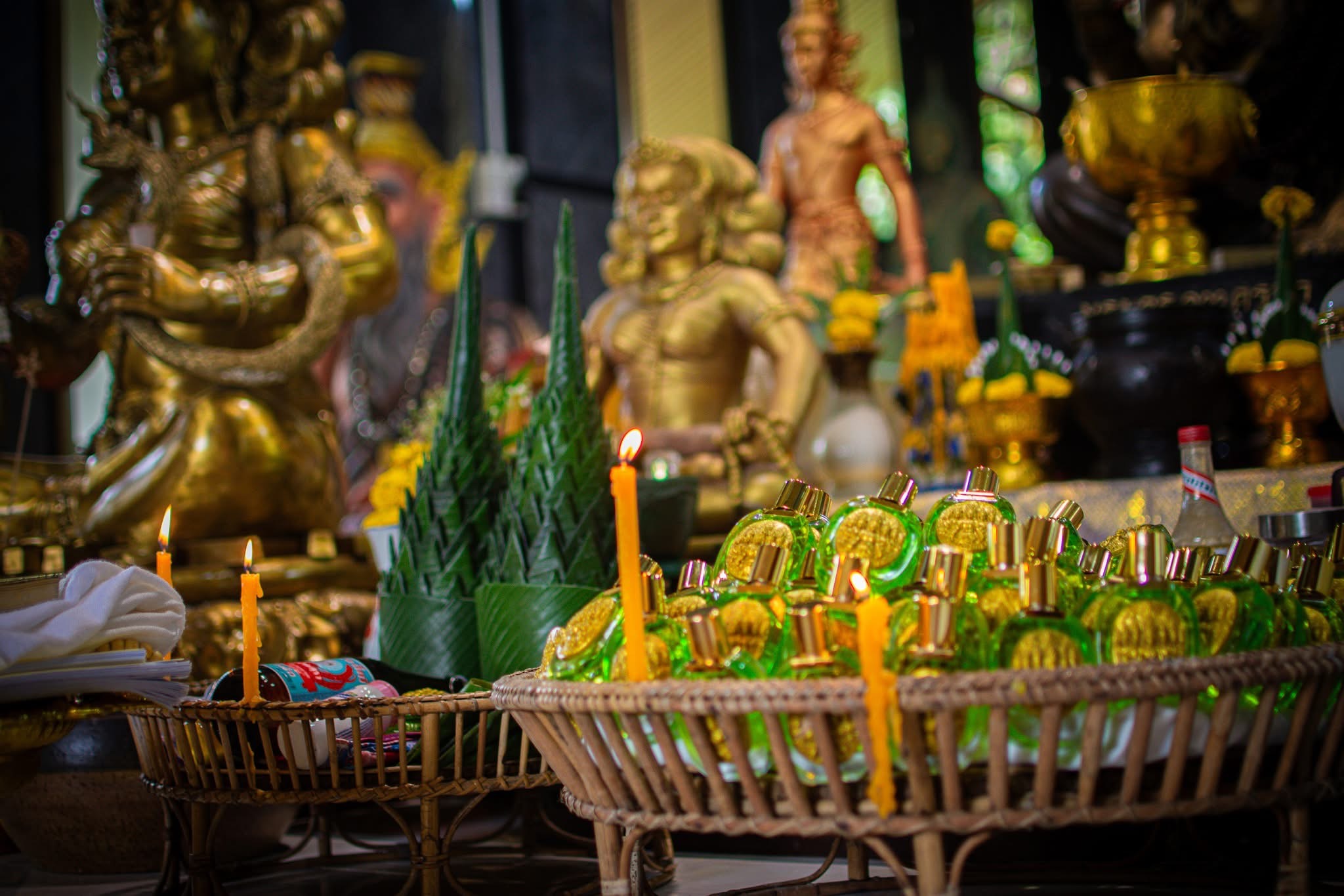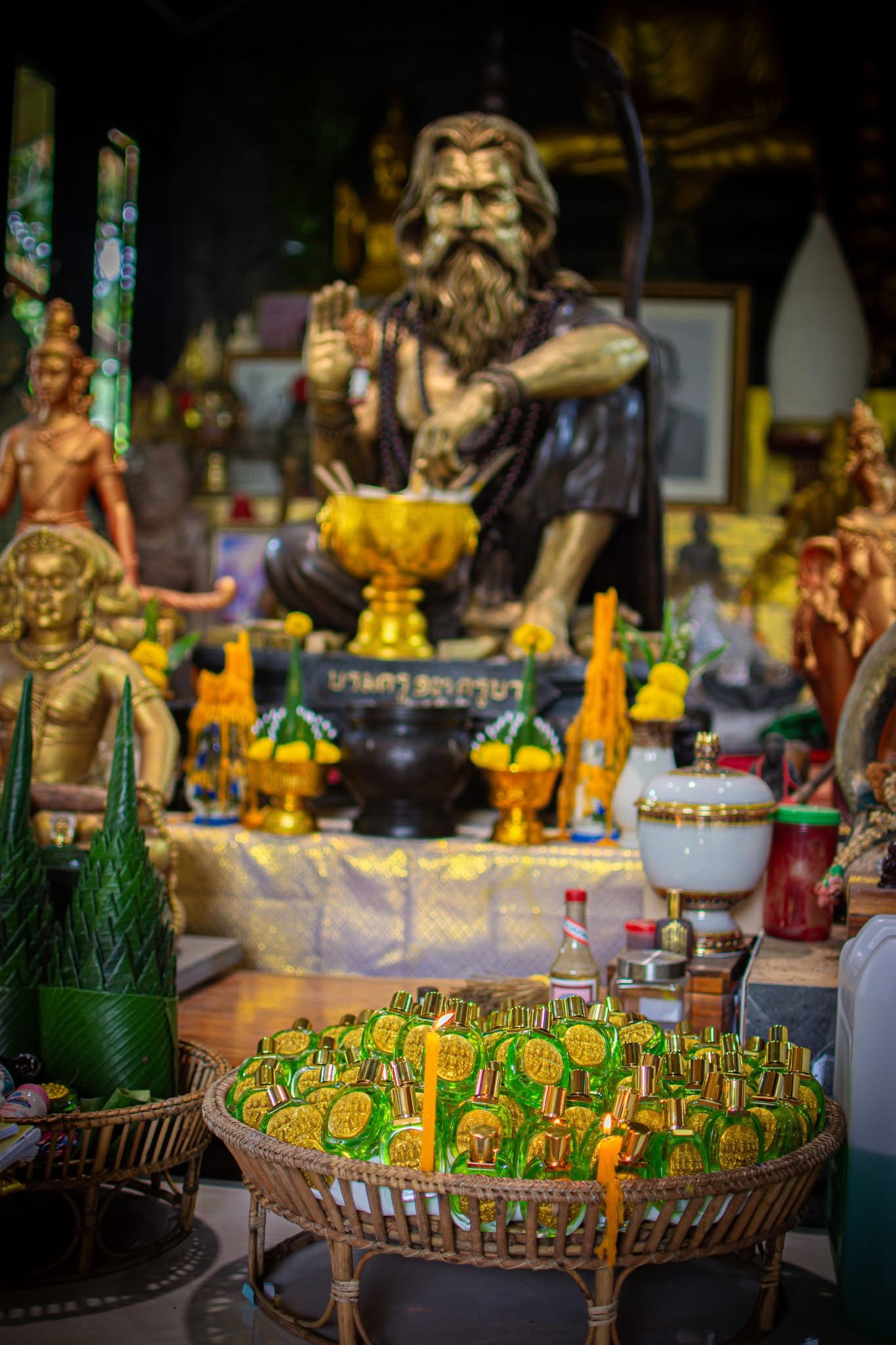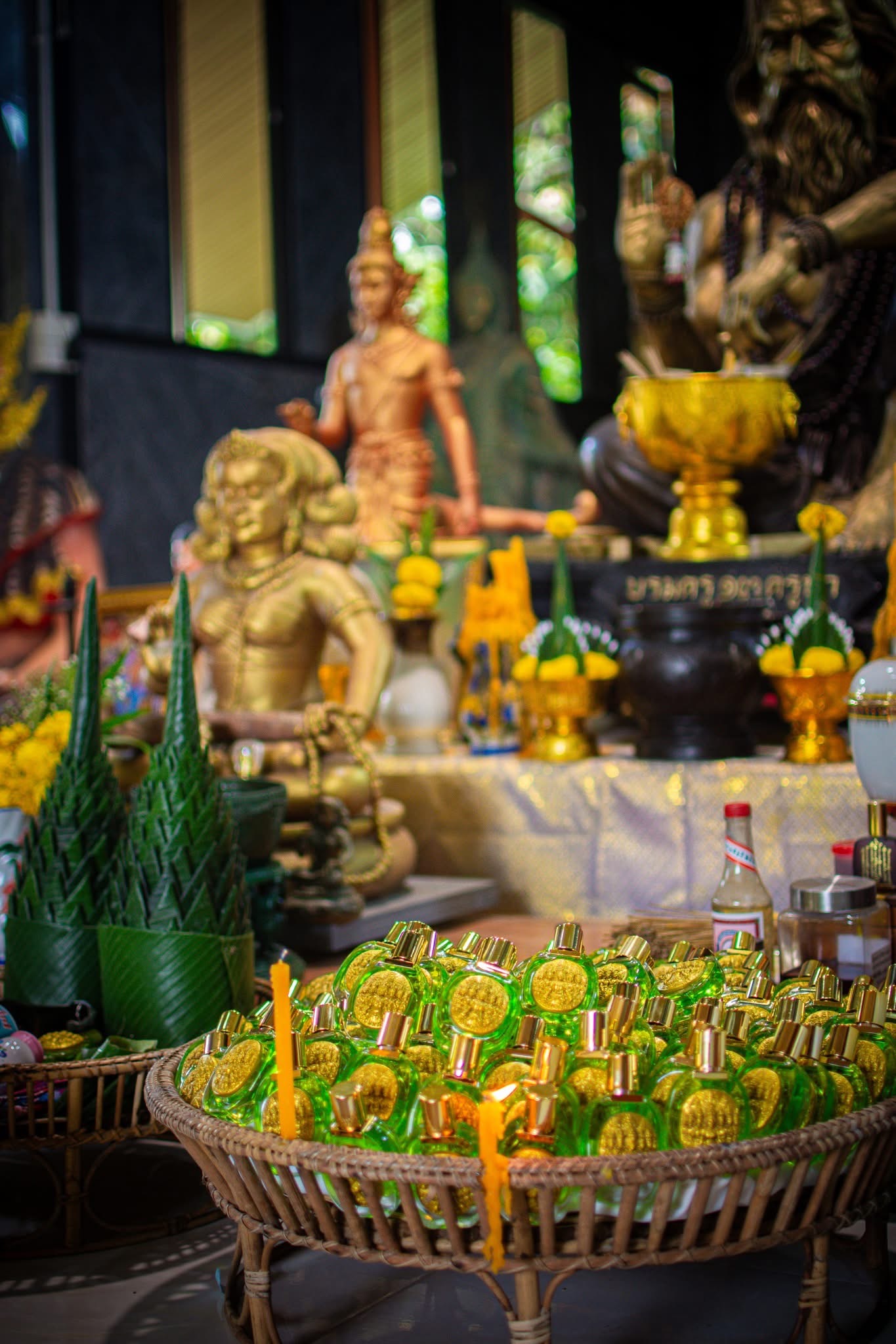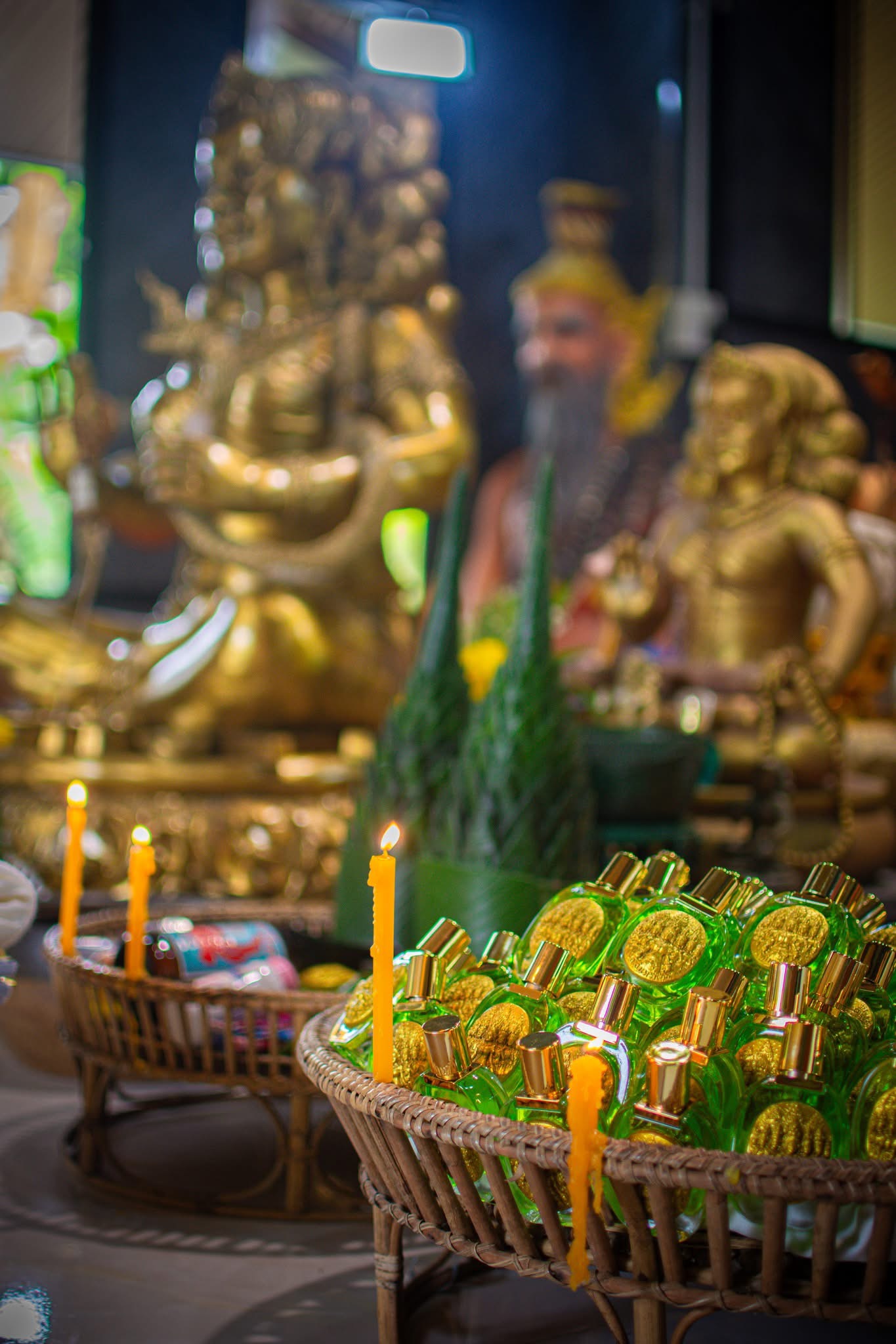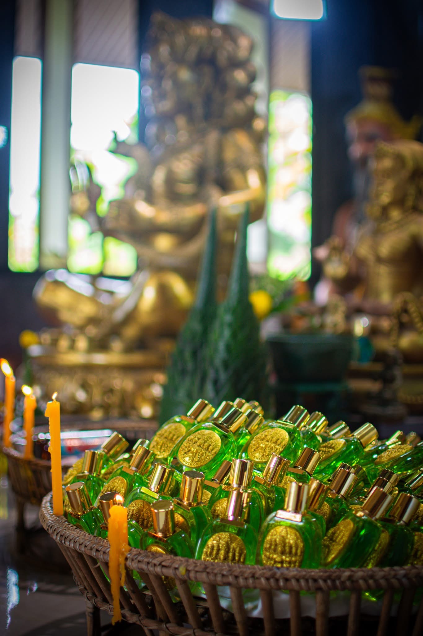 Arjarn Inkaew, upon studying the ancient manuscript and recognizing its great power, chose to bring it to life in the form of a sacred perfume. Arjarn Inkaew meticulously designed and sculpted the seven Apsaras, celestial maidens by hand, using sacred materials he had collected over many years. Each figure was hand-pressed and affixed to the perfume bottle (big bottle) with care. Even after the perfume is finished, the bottle itself can be kept for veneration, used for prayer, or the Apsara figure can be removed and enshrined separately.
